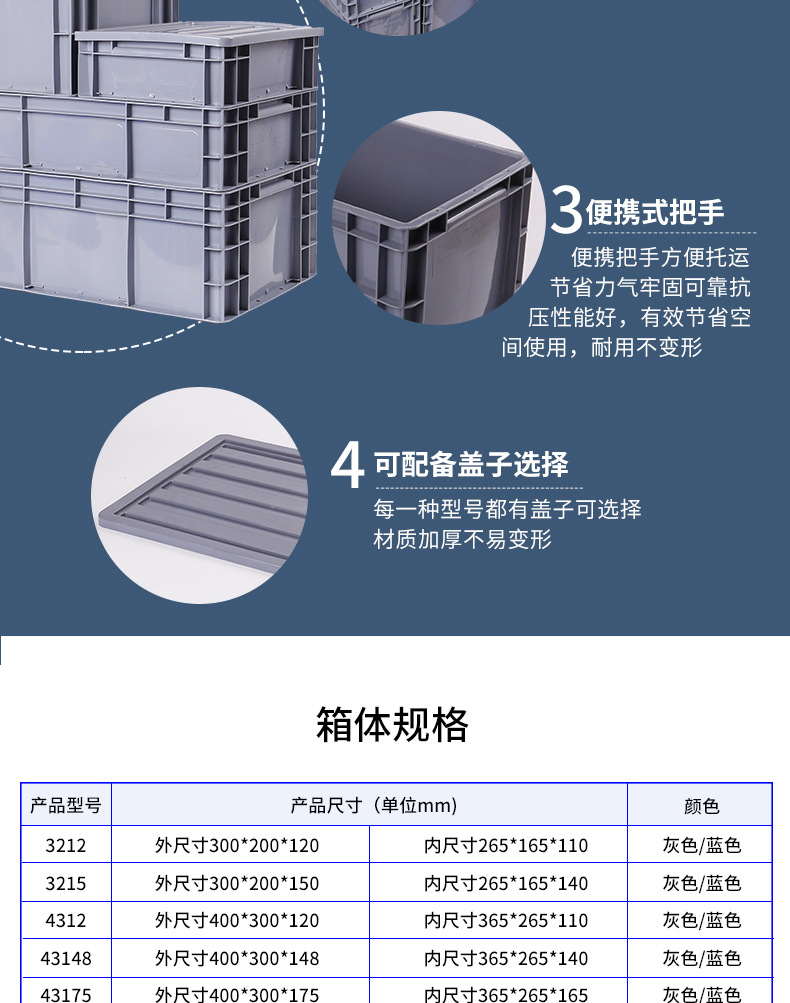 | Colores | 300*200*120 gris,300*200*120 azul,300*200*150 gris,300*200*150 azul,400*300*120 gris,400*300*120 azul,400*300*148 gris,400*300*148 azul,400*300*175 gris,400*300*175 azul,400*300*230 gris,400*300*230 azul,400*300*280 gris,400*300*280 azul,600*400*120 gris,600*400*120 azul,600*400*148 gris,600*400*148 azul,600*400*175 gris,600*400*175 azul,600*400*230 gris,300*200 cubierta azul/gris,400*300 tapa azul/gris,600*400 tapa azul/gris,Gris 600*400*280,Gris 600*400*340,Pequeño 2 pisos,Pequeño 3 pisos,Pequeño 4 pisos,Medio 2 pisos,Medio 3 pisos,Medio 4 pisos,Grande de 2 pisos,3 pisos grandes,4 pisos grandes,Gris 900*400*230,Azul 900*400*230,Gris 1200*400*280,Azul 1200*400*280,Blanco 1200*400*280,90 más 2 pisos,90 más 3 pisos,90 más 4 pisos,No. 120 2do piso,No. 120 3 pisos,No. 120 4 pisos |