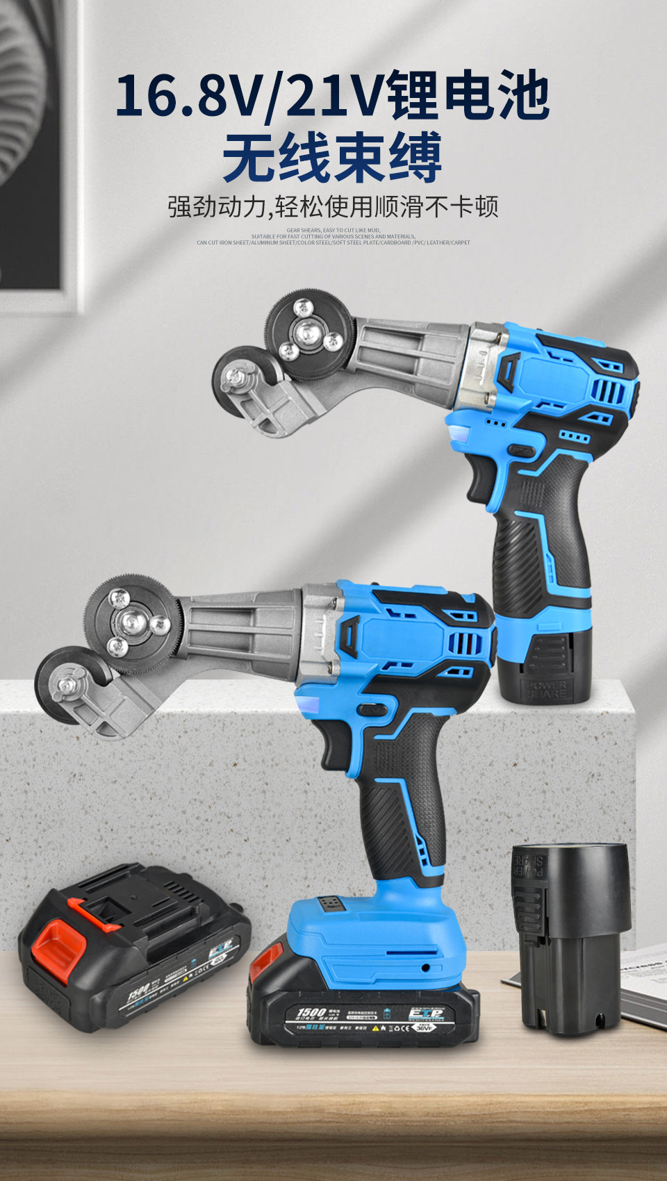 | Especificaciones | Cizalla de taladro eléctrico (taladro recargable),Cortador de taladro eléctrico (taladro eléctrico/taladro de impacto universal),Cizalla de batería de litio de 16,8 V una batería y una carga,Máquina cizalla de batería de litio de 16,8 V dos baterías y una carga,Cizalla de batería de litio de 21V una batería y una carga,Máquina cizalla de batería de litio de 21V dos baterías y una carga |