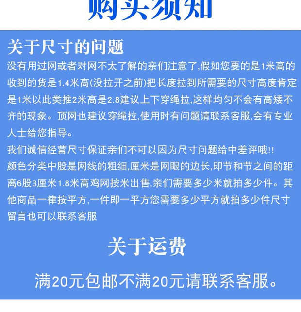 | Especificaciones | 12 hilos 3 cm malla de pollo 1 metro de altura 10 metros de largo★Envía una cuerda de 20 metros,18 hilos de 2 cm de malla de pollo 1 metro de altura 10 metros de largo★Envía una cuerda de 20 metros,Red de pollo de 12 hilos de 3 cm 1 altura 50 metros de largo★Enviar 100 cuerdas,18 hebras 2 cm malla de pollo 1 altura 50 metros de largo★100 metros de cuerda gratis,12 hebras 3 cm malla de pollo 1 metro de altura 100 metros de largo★Enviar cuerda de 200 metros,18 hebras 2 cm malla de pollo 1 metro de altura 100 metros de largo★Enviar cuerda de 200 metros,12 hebras 3 cm malla de pollo 1,2 metros de altura 10 metros de largo★Envía una cuerda de 20 metros,18 hebras de 2 cm malla de pollo 1,2 metros de altura 10 metros de largo★Envía una cuerda de 20 metros,12 hebras 3 cm malla de pollo 1,2 metros de altura 20 metros de largo★40 metros de cuerda,18 hilos 2 cm malla de pollo 1,2 metros de altura 20 metros de largo★Enviar cuerda de 40 metros,12 hebras 3 cm malla de pollo 1,2 metros de altura 30 metros de largo★60 metros de cuerda gratis,18 hilos 2 cm malla de pollo 1,2 metros de altura 30 metros de largo★60 metros de cuerda gratis,Red de pollo de 12 hebras de 3 cm 1,2 metros de altura 50 metros de largo★100 metros de cuerda,18 hebras de 2 cm malla de pollo 1,2 metros de altura 50 metros de largo★60 metros de cuerda gratis,Red de pollo de 12 hilos de 3 cm 1,2 metros de altura 100 metros de largo★Enviar cuerda de 200 metros,18 hilos 2 cm malla de pollo 1,2 metros de altura 100 metros de largo★Enviar cuerda de 200 metros,Red de pollo de 12 hilos de 3 cm 1,5 metros de altura 10 metros de largo★Envía una cuerda de 20 metros,18 hilos de 2 cm de malla de pollo 1,5 metros de altura 10 metros de largo★Envía una cuerda de 20 metros,Red de pollo de 12 hilos de 3 cm 1,5 metros de altura 20 metros de largo★Enviar cuerda de 40 metros,18 hilos 2 cm malla de pollo 1,5 metros de altura 20 metros de largo★Enviar cuerda de 40 metros,Red de pollo de 12 hilos de 3 cm 1,5 metros de altura 30 metros de largo★60 metros de cuerda gratis,18 hilos 2 cm malla de pollo 1,5 metros de altura 30 metros de largo★60 metros de cuerda gratis,Red de pollo de 12 hilos de 3 cm 1,5 metros de altura 50 metros de largo★100 metros de cuerda gratis,18 hilos 2 cm malla de pollo 1,5 metros de altura 50 metros de largo★100 metros de cuerda gratis,Red de pollo de 12 hilos de 3 cm 1,5 metros de altura 100 metros de largo★200 metros de cuerda,18 hilos de 2 cm de malla de pollo 1,5 metros de altura 100 metros de largo★Enviar cuerda de 200 metros,Red de pollo de 12 hilos de 3 cm 1,8 metros de altura 20 metros de largo★Enviar cuerda de 40 metros,18 hilos 2 cm malla de pollo 1,8 metros de altura 20 metros de largo★Enviar cuerda de 40 metros,Red de pollo de 12 hilos de 3 cm 1,8 metros de altura 30 metros de largo★60 metros de cuerda gratis,18 hilos 2 cm malla de pollo 1,8 metros de altura 30 metros de largo★60 metros de cuerda gratis,Red de pollo de 12 hilos de 3 cm 1,8 metros de altura 50 metros de largo★100 metros de cuerda gratis,18 hilos 2 cm malla de pollo 1,8 metros de altura 50 metros de largo★100 metros de cuerda gratis,Red de pollo de 12 hilos de 3 cm 1,8 metros de altura 100 metros de largo★Enviar cuerda de 200 metros,18 hilos 2 cm malla de pollo 1,8 metros de altura 100 metros de largo★100 metros de cuerda gratis,18 hilos 2 cm de malla de pollo 2 metros de altura 10 metros de largo★Envía una cuerda de 20 metros,12 hebras 3 cm malla de pollo 2 metros de altura 20 metros de largo★Enviar cuerda de 40 metros,18 hebras 2 cm malla de pollo 2 metros de altura 20 metros de largo★Enviar cuerda de 40 metros,12 hebras 3 cm malla de pollo 2 metros de altura 30 metros de largo★60 metros de cuerda gratis,18 hilos 2 cm de malla de pollo 2 metros de altura 30 metros de largo★60 metros de cuerda gratis,Red de pollo de 12 hilos de 3 cm 2 metros de altura 50 metros de largo★100 metros de cuerda gratis,18 hilos 2 cm malla de pollo 2 metros de altura 50 metros de largo★100 metros de cuerda gratis,Red de pollo de 12 hilos de 3 cm 2 metros de altura 100 metros de largo★Enviar cuerda de 200 metros,18 hebras 2 cm malla de pollo 2 metros de altura 100 metros de largo★Enviar cuerda de 200 metros,Red de pollo de 12 hebras de 3 cm 2,5 metros de altura 50 metros de largo★100 metros de cuerda gratis,18 hebras 2 cm malla de pollo 2,5 metros de altura 50 metros de largo★100 metros de cuerda gratis,Red de pollo de 12 hilos de 3 cm, 2,5 metros de altura, 100 metros de largo★Enviar cuerda de 200 metros,18 hebras 2 cm malla de pollo 2,5 metros de altura 100 metros de largo★Enviar cuerda de 200 metros,Red de pollo de 12 hebras 3 cm 3 metros de altura 50 metros de largo★100 metros de cuerda gratis,18 hebras 2 cm malla de pollo 3 metros de altura 50 metros de largo★100 metros de cuerda gratis,12 hebras 3 cm malla de pollo 3 metros de altura 100 metros de largo★Enviar cuerda de 200 metros,18 hilos 2 cm malla de pollo 3 metros de altura 100 metros de largo★Enviar cuerda de 200 metros,Red de pollo de 12 hilos de 3 cm 4 metros de altura 50 metros de largo★100 metros de cuerda gratis,Red de pollo de 12 hilos de 3 cm 4 metros de altura 100 metros de largo★Enviar cuerda de 200 metros,Pollo de 12 hilos de 3 cm 5 metros de altura 50 metros de largo★100 metros de cuerda gratis,Red de pollo de 12 hilos de 3 cm 10 metros de altura 10 metros de largo★Envía una cuerda de 20 metros,Tamaño personalizado (cualquier tamaño) |