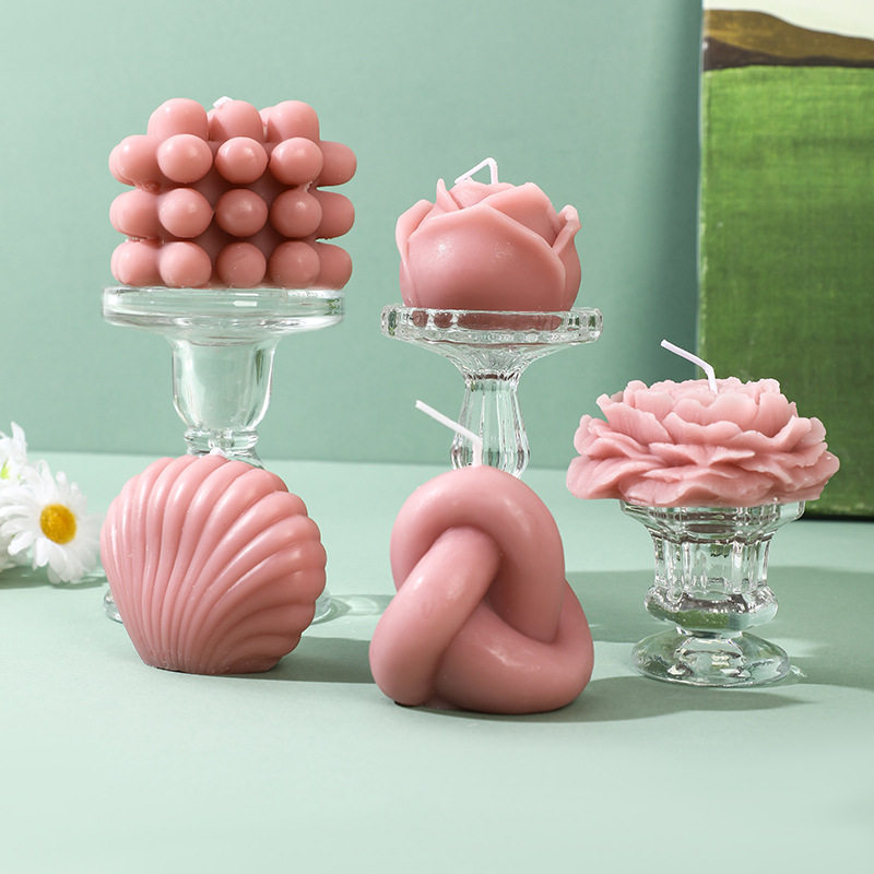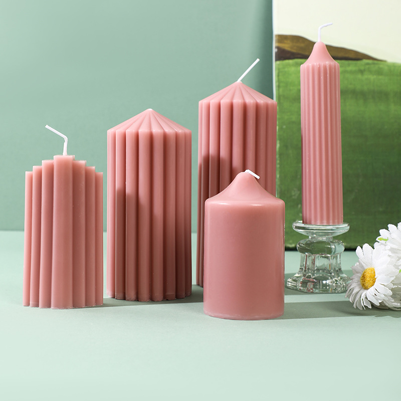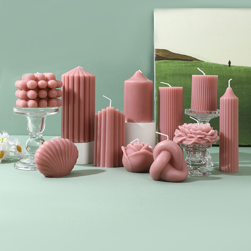Vintage rosa gris largo estilo de vela casera boda vela vela cena candelabro decoración del hogar adornos