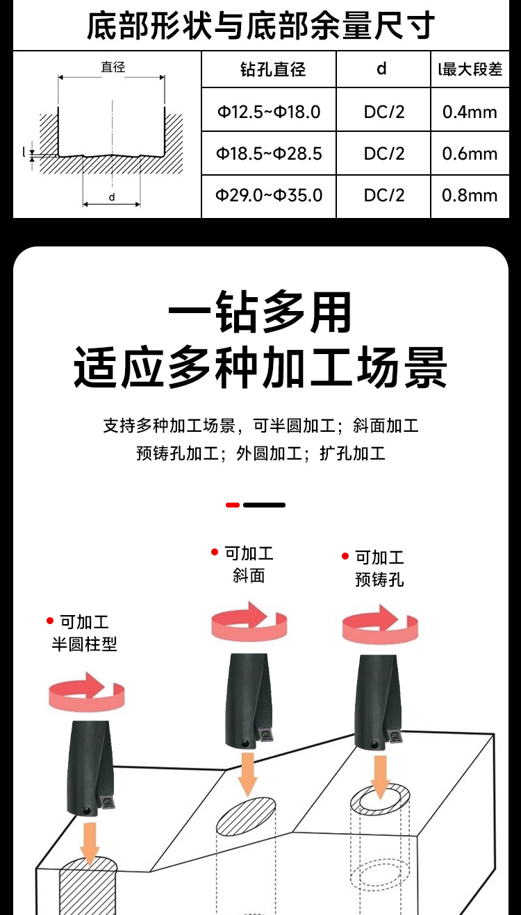Taladro u-taladro de fondo plano Taladro rápido de orificio profundo H13 Material de alta dureza Serie WDX Taladro u-taladro violento Mango de taladro Rhinestone