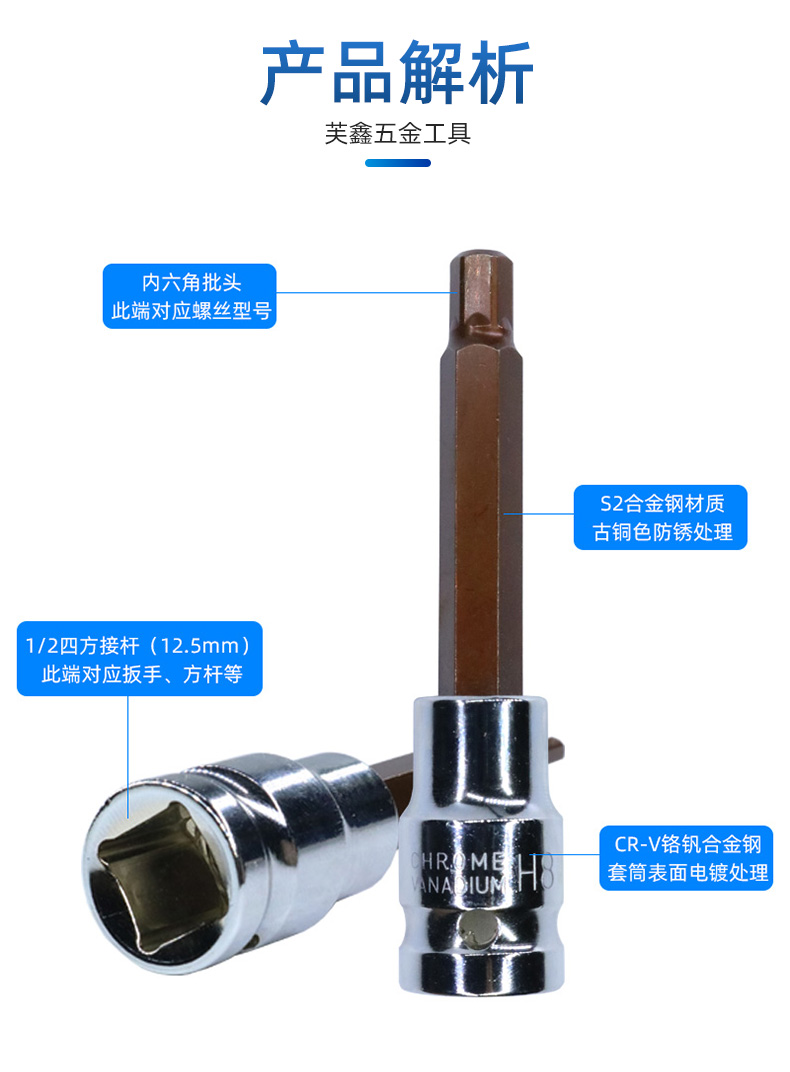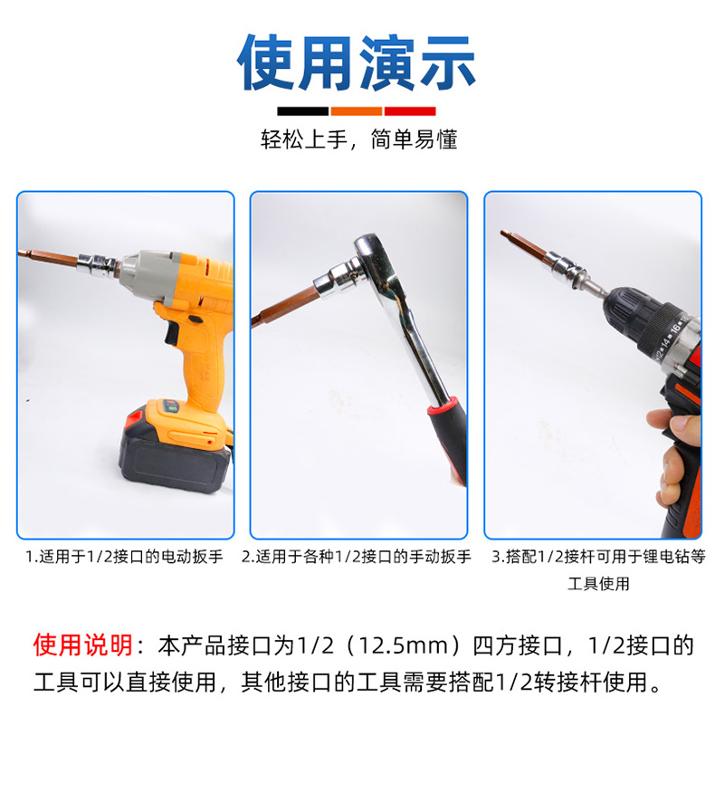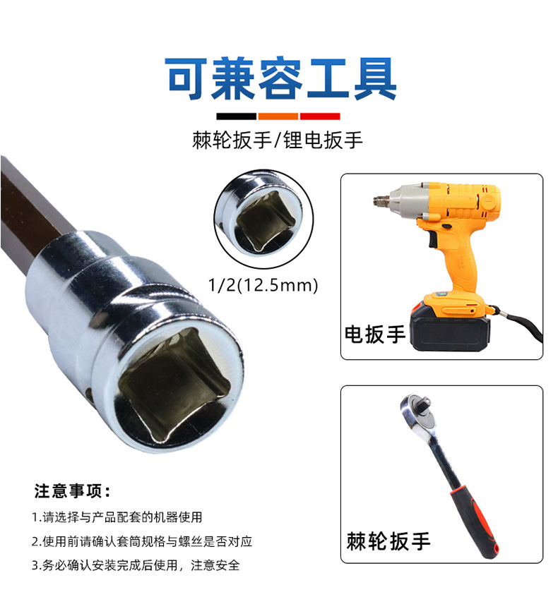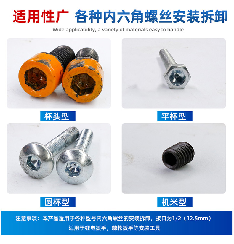 manguito hexagonal interno 1 / 2 llave eléctrica hexagonal interno conjunto de cabeza de lote combinado cañón de aire alargado S2 tornillo cabeza de manguito