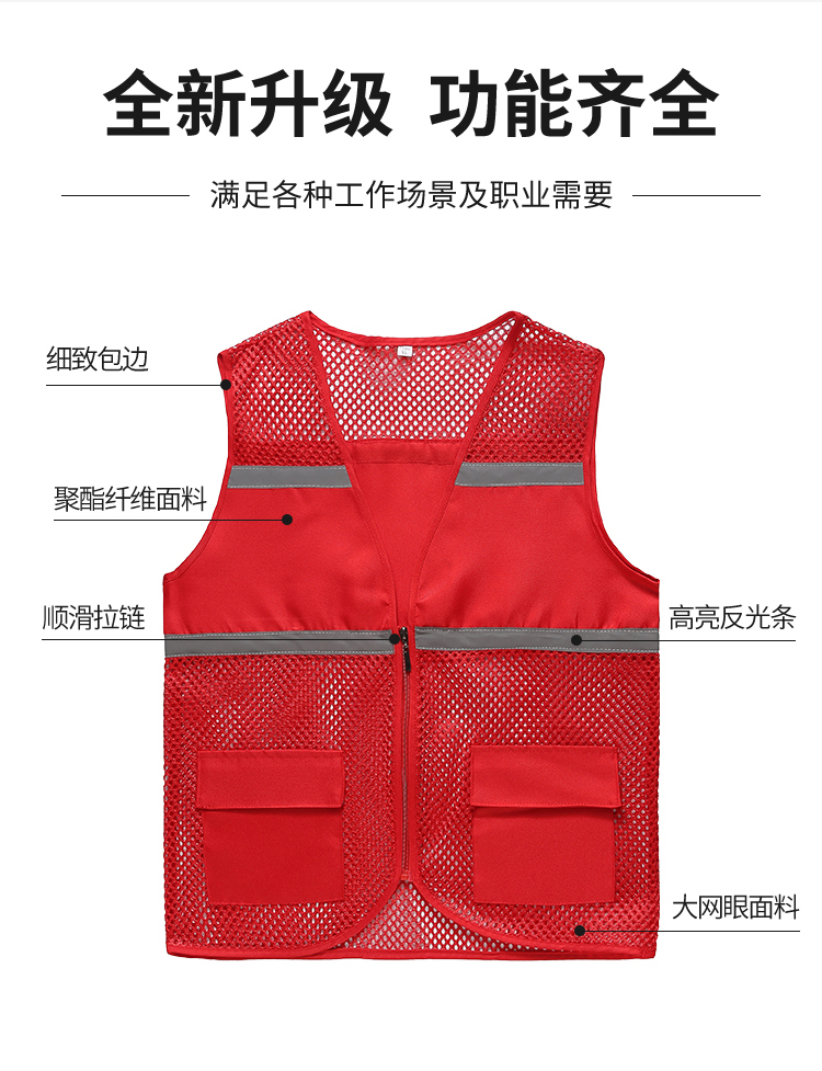 Chaleco de seguridad reflectante voluntario chaleco personalizado malla roja ventilada transporte entrega ropa de trabajo sanitaria