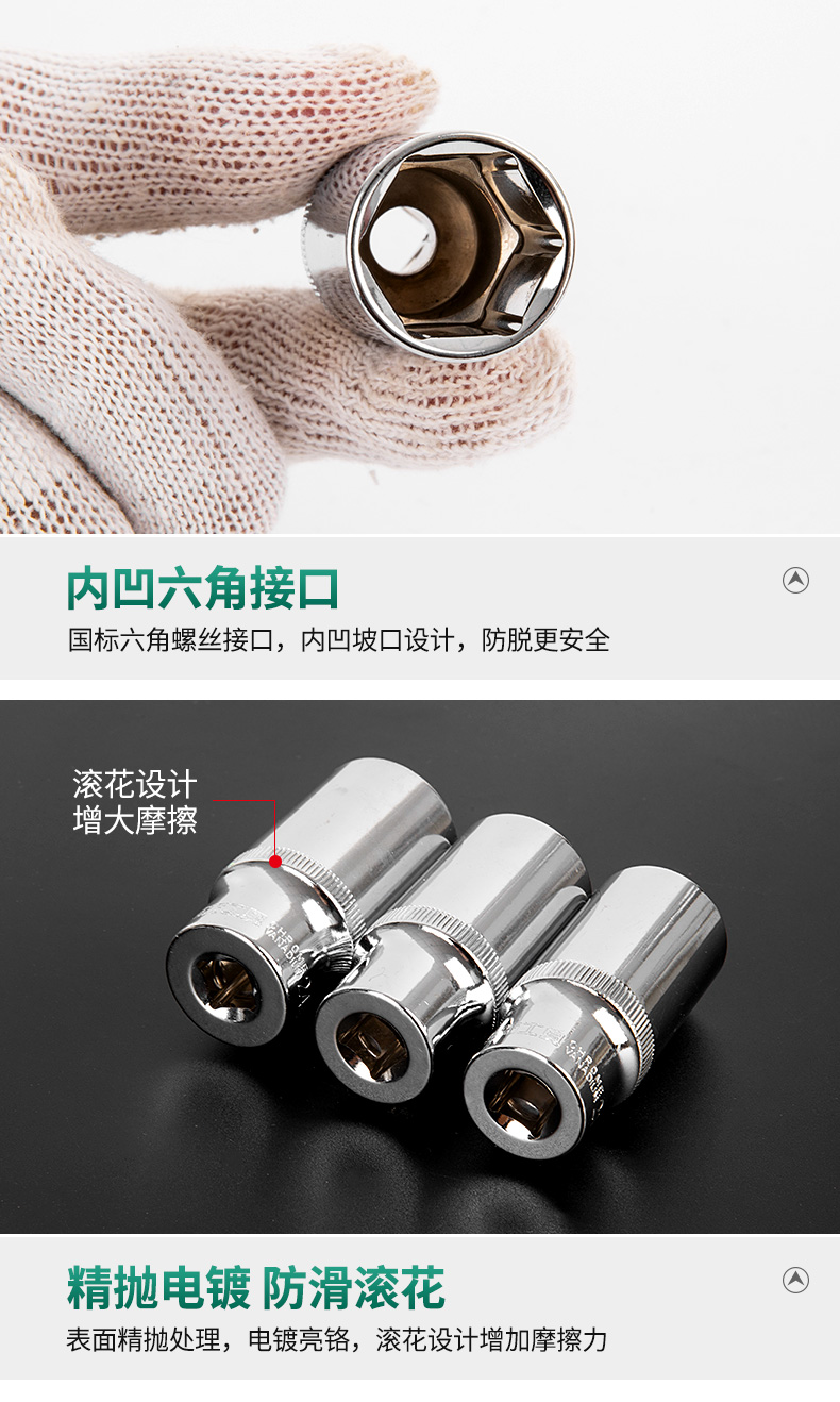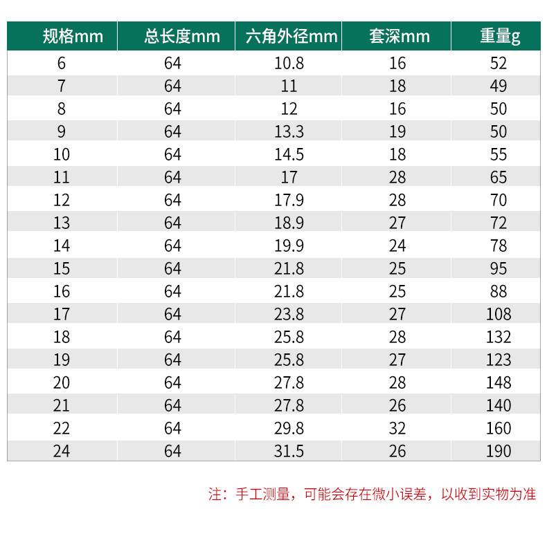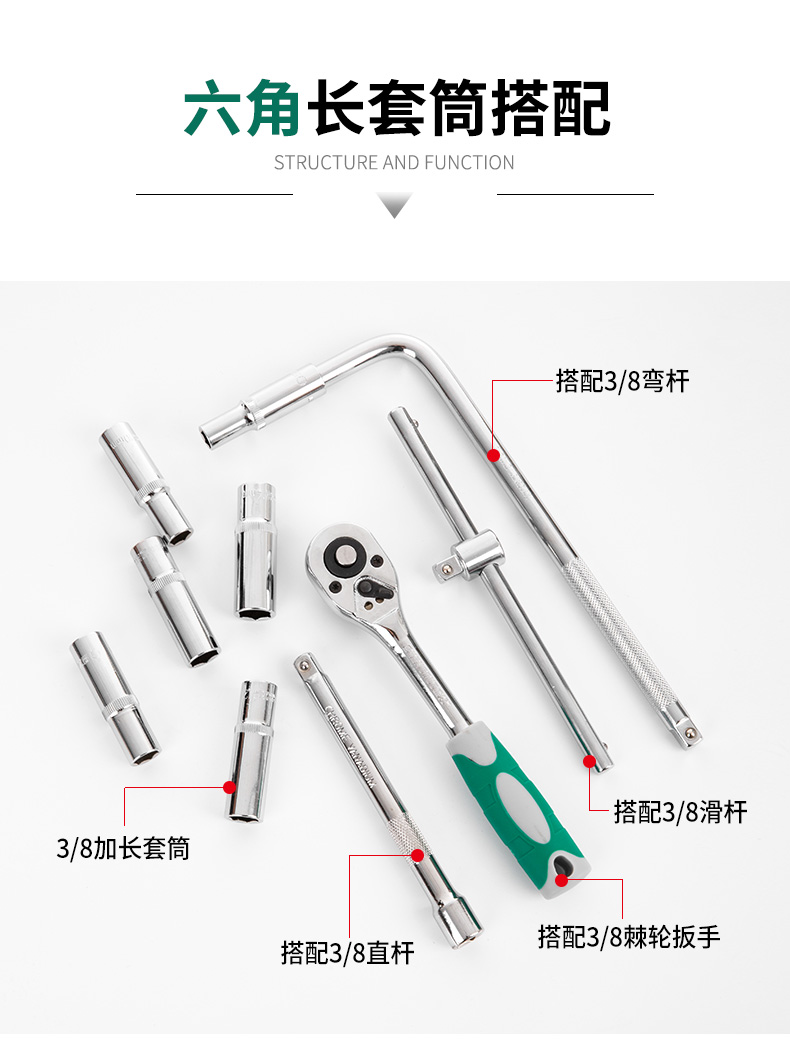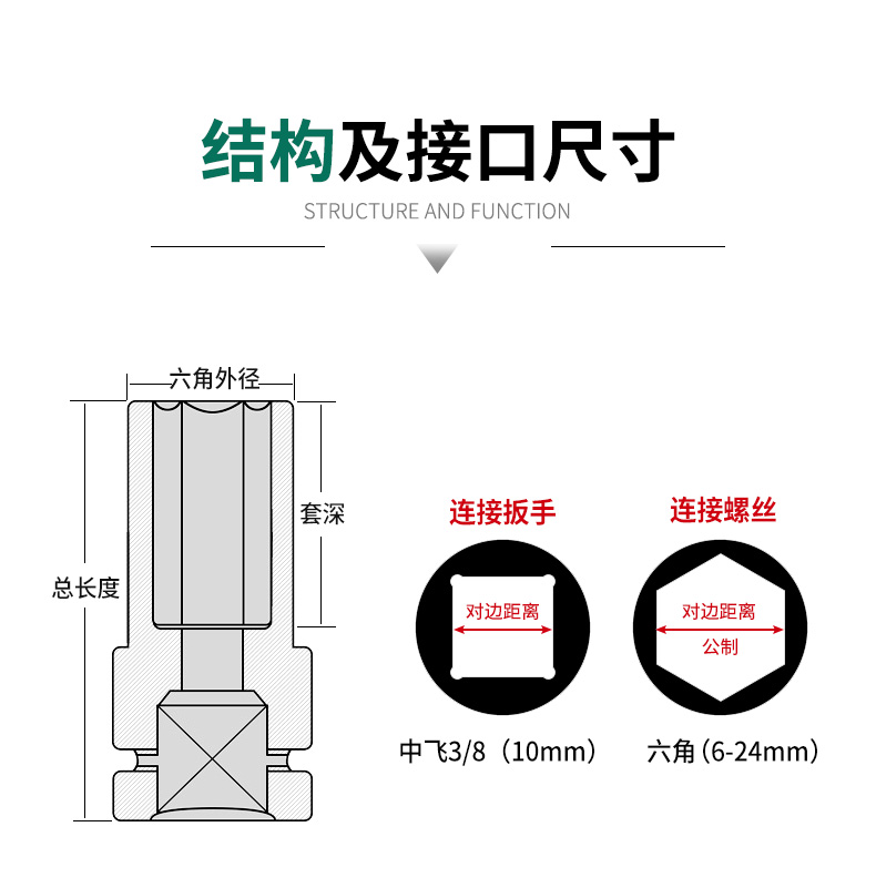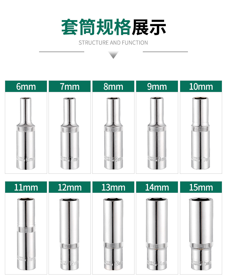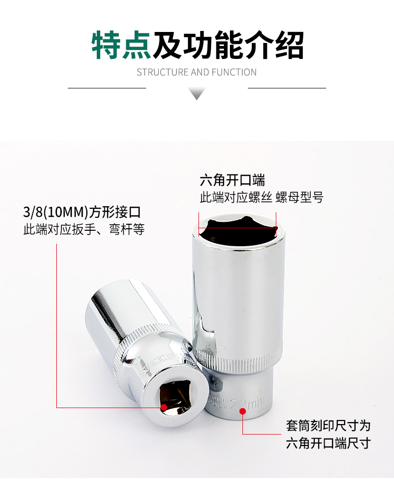 Shengtao Zhongfei alargar la cabeza de la manga, llave de trinquete alargada, manga corta, 3 / 8 Zhongfei hexagonal 10 boca cuadrada