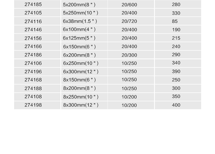 | Especificaciones y modelos | Destornillador de letra azul 3x50mm 274123, destornillador de letra azul 3x75mm 274133, destornillador de letra azul 3x100mm 274143, destornillador de letra azul 3x125mm 274153, destornillador de letra azul 3x150mm 274163, destornillador de letra azul 3x200mm 274183, destornillador de letra azul 5x50mm 274125, destornillador de letra azul 5x75mm 274135, destornillador de letra azul 5x100mm 274145, destornillador de letra azul 5x125mm 274155, destornillador de letra azul 1505mm mm 274.155, destornillador de letra azul 5x200 mm 274.185, destornillador de letra azul 5x250 mm 274.105, destornillador de letra azul 6x38 mm 274.116, destornillador de letra azul 6x100 mm 274.146, destornillador de letra azul 6x125 mm 274.156, destornillador de letra azul 6x150 mm 274.166, destornillador de letra azul 6x200 mm 274.186, destornillador de letra azul 6x250 mm 274.106, destornillador de letra azul 6x300 mm 274.196, destornillador de letra azul 8 x150mm 274168, Destornillador de letra azul 8x200mm 274188, destornillador de letra azul 8x250mm 274108, destornillador de letra azul 8x300mm 274198 |
