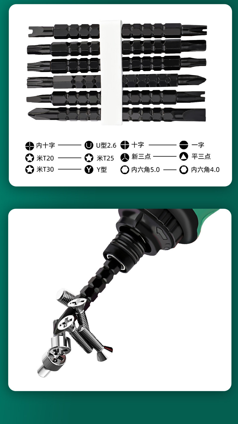 Juego de destornillador de trinquete, cruz corta, cabeza de zanahoria pequeña de forma especial, herramienta multifuncional de alta dureza y ahorro de mano de obra