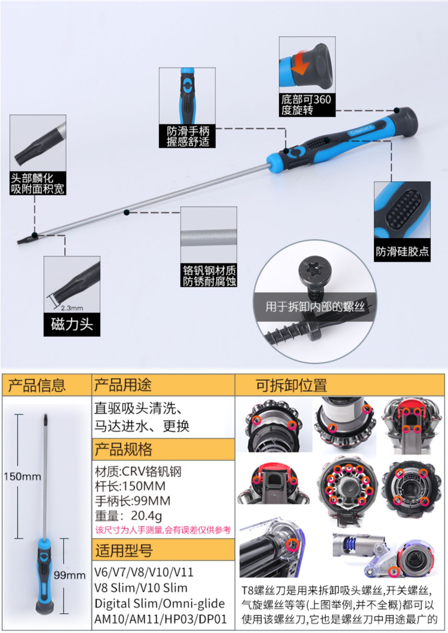 Herramienta de limpieza de reparación y desmontaje de destornillador para Dyson Hexagon Plum Vacuum Cleaner
