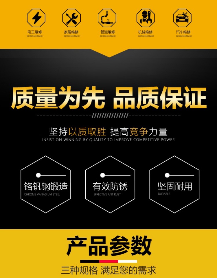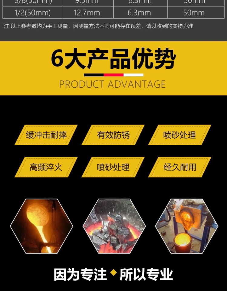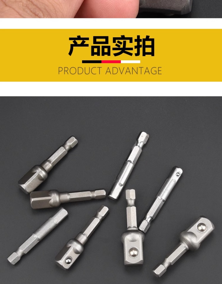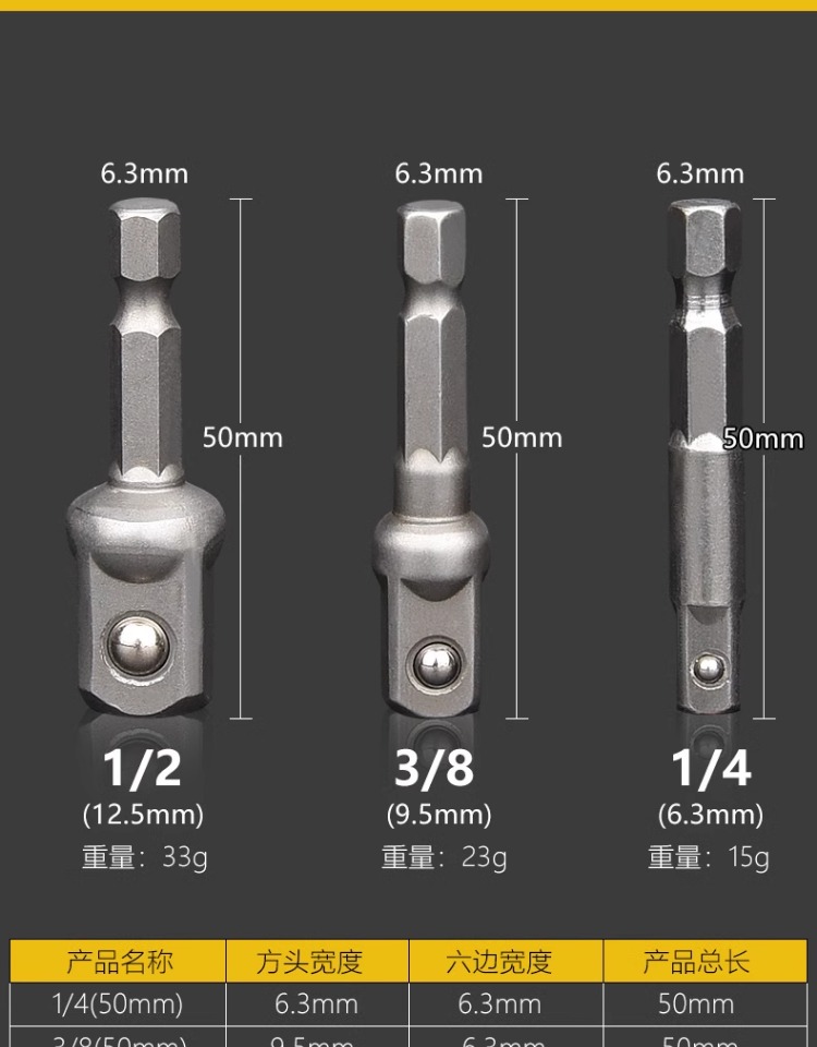| Departamento | Juego de tres piezas de color, juego de tres piezas de 50 mm, barra de conexión de manga 1 / 2 (mango 6.3 mm), barra de conexión de manga 3 / 8 (mango 6.3 mm), barra de conexión de manga 1 / 4 (mango 6.3 mm) |