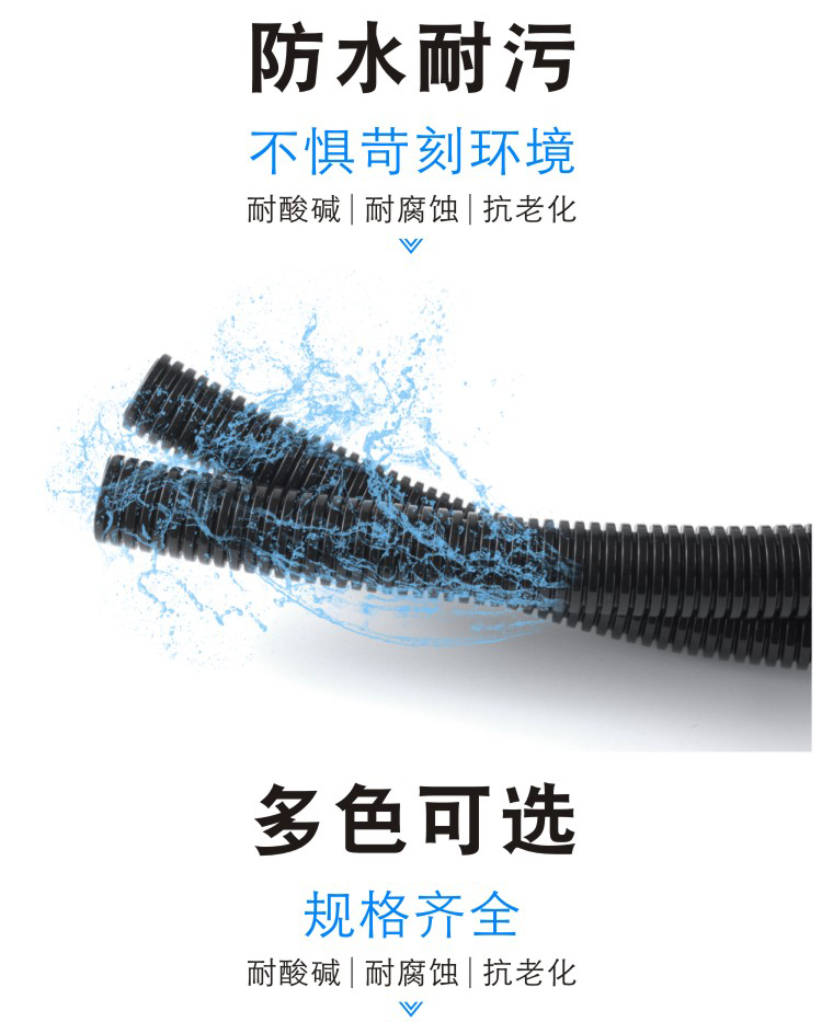 Bazo de cableado del automóvil, fuelle, tubo de protección de alambre ignífugo PP, protección del medio ambiente, aislamiento térmico a altas temperaturas, tubo roscado, apertura lateral