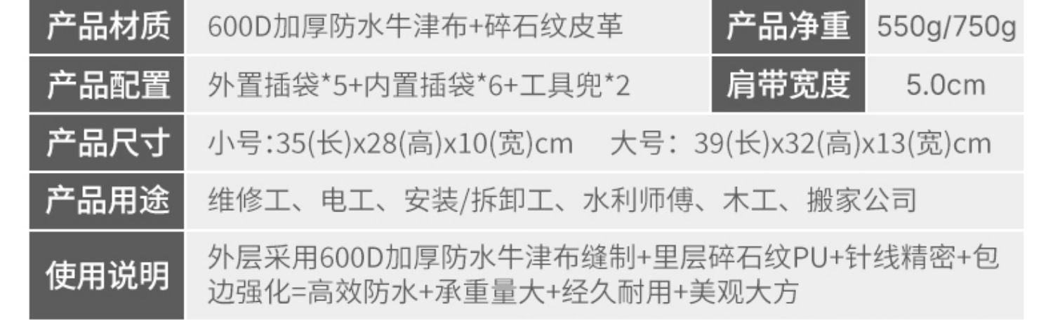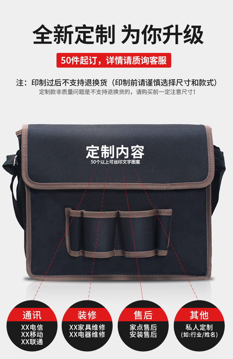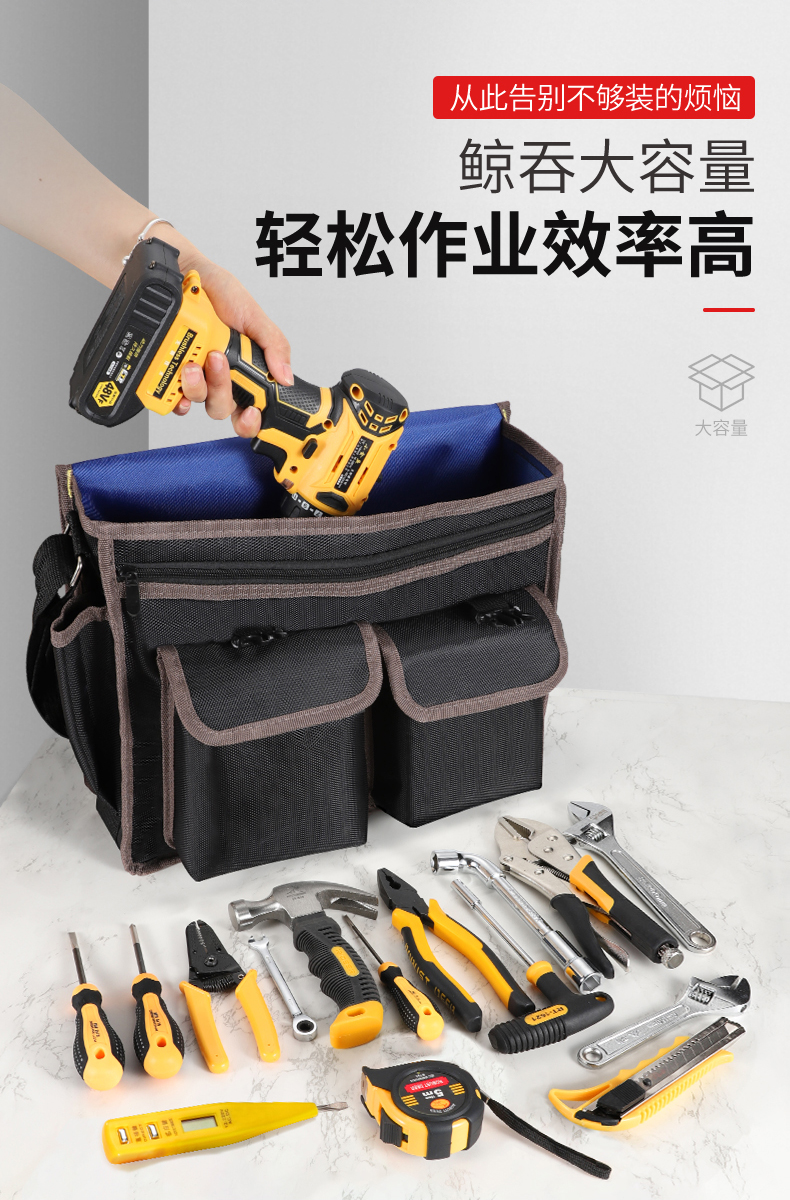 Kit de herramientas eléctricas para hombres multifuncional mantenimiento de instalación bolsa de lona gruesa de gran capacidad bolso de hombro Oxford duradero