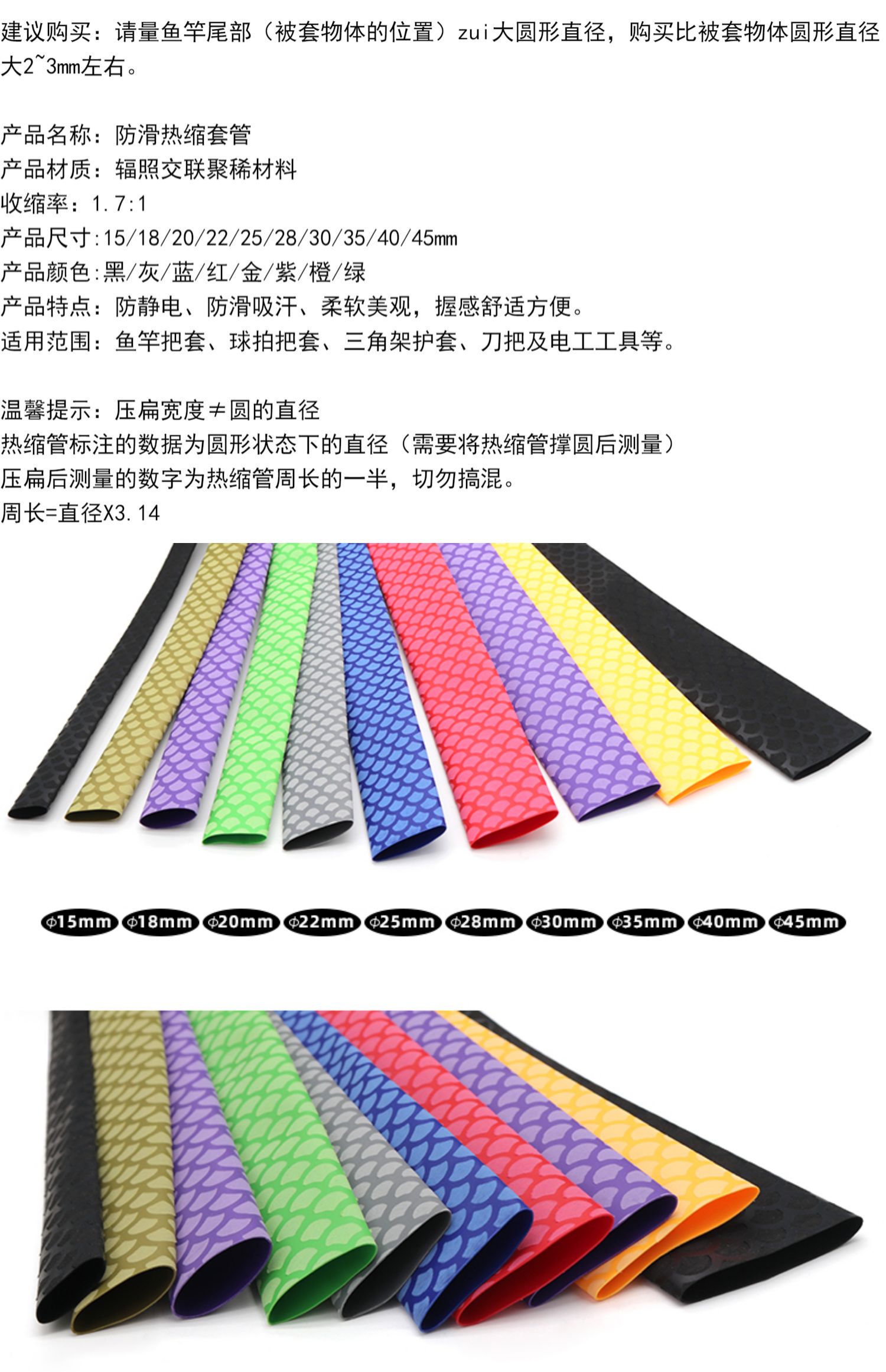 Tubo de contracción en caliente antideslizante caña de pesca con escamas de pescado, manga antideslizante de absorción de sudor, manga de mano 15 / 20 / 225mm