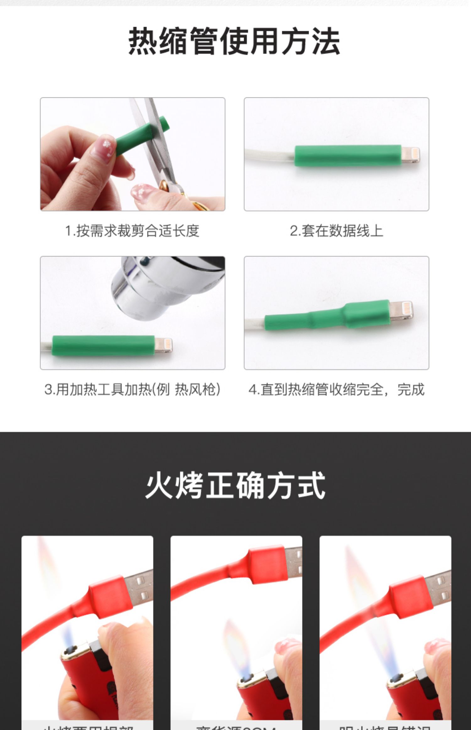 tubo de encogimiento térmico aislante conector manguito de cableado de carga de teléfono móvil cable de datos reparación de tubo de encogimiento térmico fundido conector de cable protector