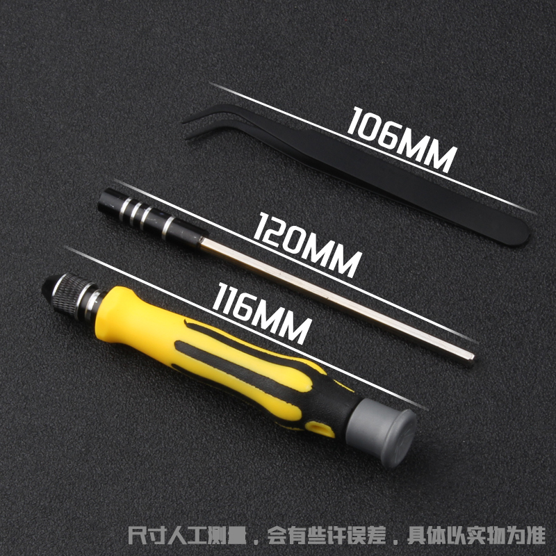 | Modelo de especificación | Destornillador 45 en uno,Nuevo juego de cuchillo de seda S2 de caracol verde oscuro,45 en uno, 5 en uno, barra de palanca,45 en uno, 12 juegos completos de bolsas de tela de palanca gratis,DL1021D kit de reparación de precisión electrónica de 21 piezas,DL1033D teléfono móvil reparación de la computadora 33 juegos,DL3545 Desmontaje y reparación de teléfonos móviles y computadoras 45 juegos,Juego de tarjeta de succión de 6 piezas de destornillador,Nuevo destornillador 32 en 1,Destornillador rojo antiguo 32 en uno,Destornillador Jackley 38 en uno,Destornillador morado 15 en 1,Destornillador verde 7 en 1,Pagoda 31 en 1. Destornillador,Destornillador Chuangtuozer 60 en 1,DL240025L destornillador de precisión juego de 25 piezas varilla de metal (amarillo),DL240025B pequeño destornillador de caja negra juego de 25 piezas (nuevo VI)(negro) |