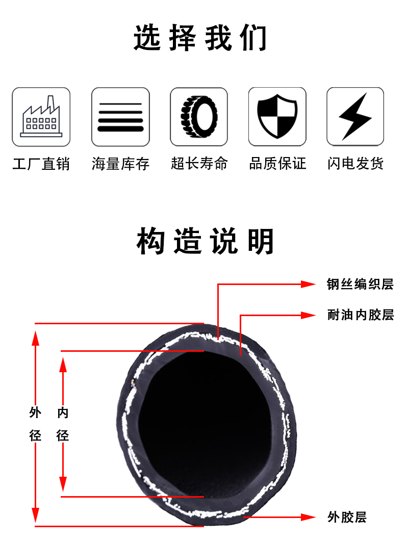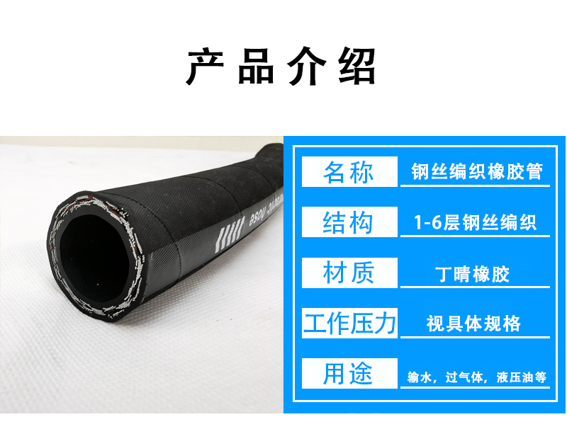 | Especificaciones y modelos | Diámetro interior 6 mm una capa de alambre de acero 32 mpa, diámetro interior 8 mm una capa de alambre de acero 28 mpa, diámetro interior 10 mm una capa de alambre de acero 26 mpa, diámetro interior 13 MM una capa de alambre de acero 23 mpa, diámetro interior 16 mm una capa de alambre de acero 18 mpa, diámetro interior 19 mm una capa de alambre de acero 15 mpa, diámetro interior 25 mm una capa de alambre de acero 12 mpa, diámetro interior 32 MM una capa de alambre de acero 9 mpa, diámetro interior 38 mm una capa de alambre de acero 7 mpa, diámetro interior 51 mm una capa de alambre de acero 4 mpa, diámetro interior 64 mm una capa de alambre de acero 3 mpa, diámetro interior 76mm una capa de alambre de acero 2 mm, diámetro interior alambre de acero 60 mpa, alambre de acero de dos capas de 8 mm de diámetro interior 58 mpa, alambre de acero de dos capas de 10 mm de diámetro interior 53 mpa, alambre de acero de dos capas de 13 MM de diámetro interior 40 mpa, alambre de acero de dos capas de 16 mm de diámetro interior 36 mpa, alambre de acero de dos capas de 19 mm de diámetro interior 34 mpa, alambre de acero de dos capas de 25 mm de diámetro interior 21 mpa, alambre de acero de dos capas de 32 mm de diámetro interior 17 mpa, alambre de acero de dos capas de 38 mm de diámetro interior 14 mpa, alambre de acero de dos capas de 51 mm de diámetro interior 10 Mpa Diámetro interior 102 mm alambre de acero de dos capas 4mpa |