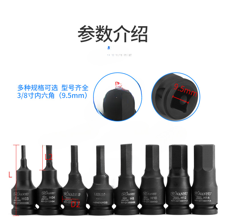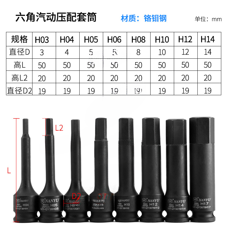 3 / 8 alargado manguito hexagonal interno rotor manguito cabeza llave de torsión neumática eléctrica cabeza de lote cañón de aire volador Nan Henan
