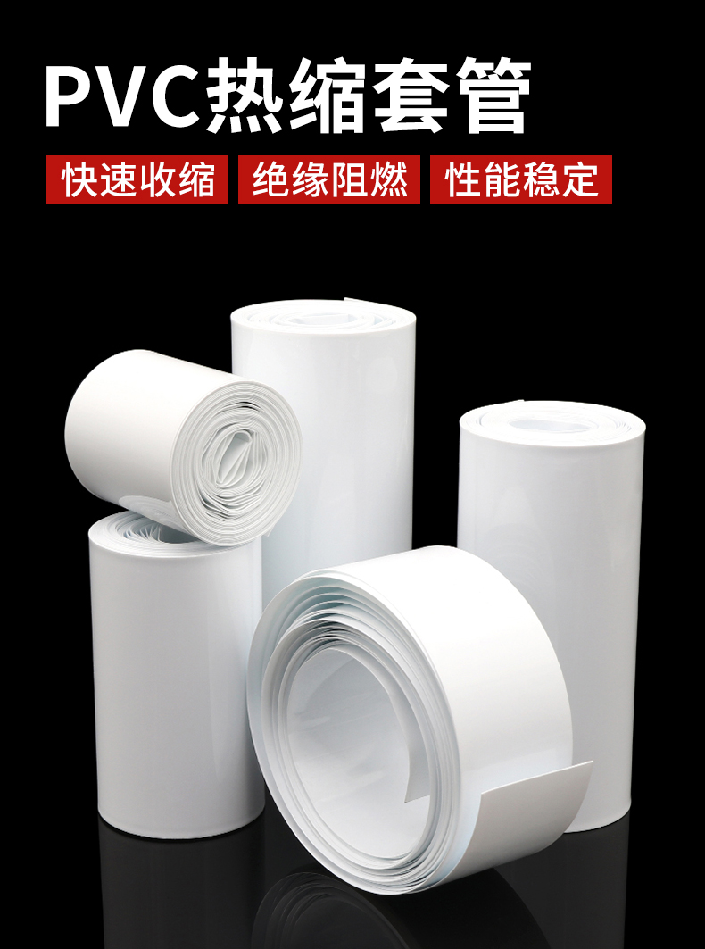 Tubo de PVC blanco retráctil 18650 batería de litio batería cubierta de batería encapsulación de película retráctil 7mm ~ 250mm al por mayor