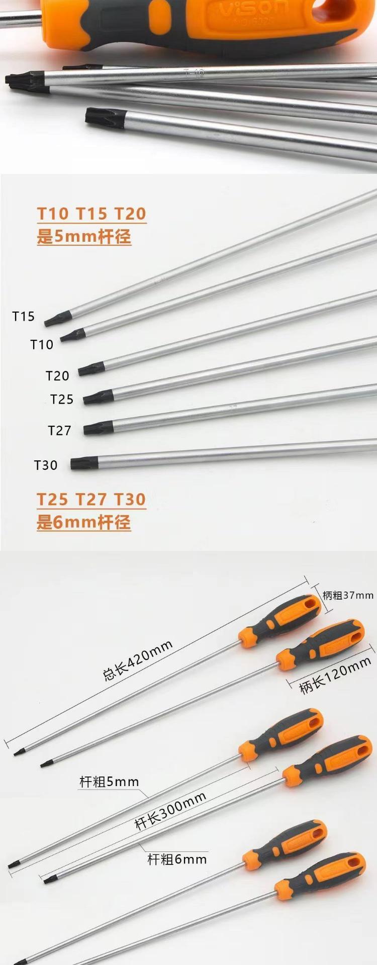 El destornillador de flor de ciruela alargada T20T10T25T30 estrella con agujero medio en forma de hexágono de 12 pulgadas