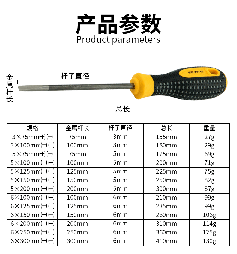 Destornillador, destornillador de boca plana, destornillador de acero al cromo-molibdeno de grado industrial