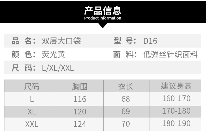 | Especificaciones y modelos | Bolsillo grande de doble capa d16 - Código l, bolsillo grande de doble capa d16 - Código xl, bolsillo grande de doble capa d16 - Código xxl, bolsillo grande de doble capa d16 naranja - Código xxl, Código d17 azul tibetano, Código d17 azul tibetano, Código d17 azul tibetano, Código d17 azul tibetano, Código D10 negro amarillo, Código D10 negro, Código D10 negro naranja |