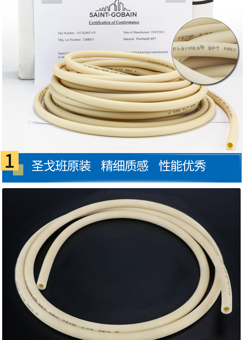 Manguera especial para bomba peristáltica, tubo de silicona de grado alimenticio importado de Saint-Gobain BPT, tubo de silicona resistente a la corrosión a alta temperatura