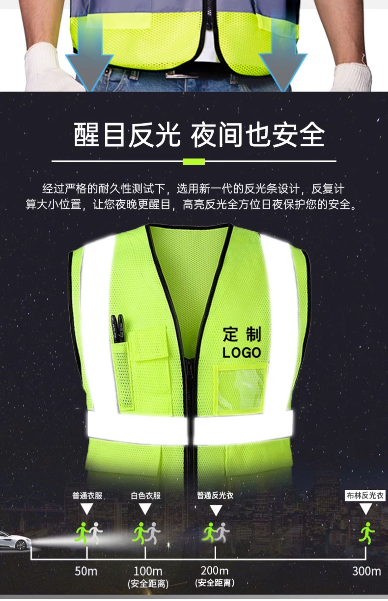 Tongming ventilador chaleco de seguridad reflectante líder de construcción chaleco de tráfico Meituan reflector personalizado log