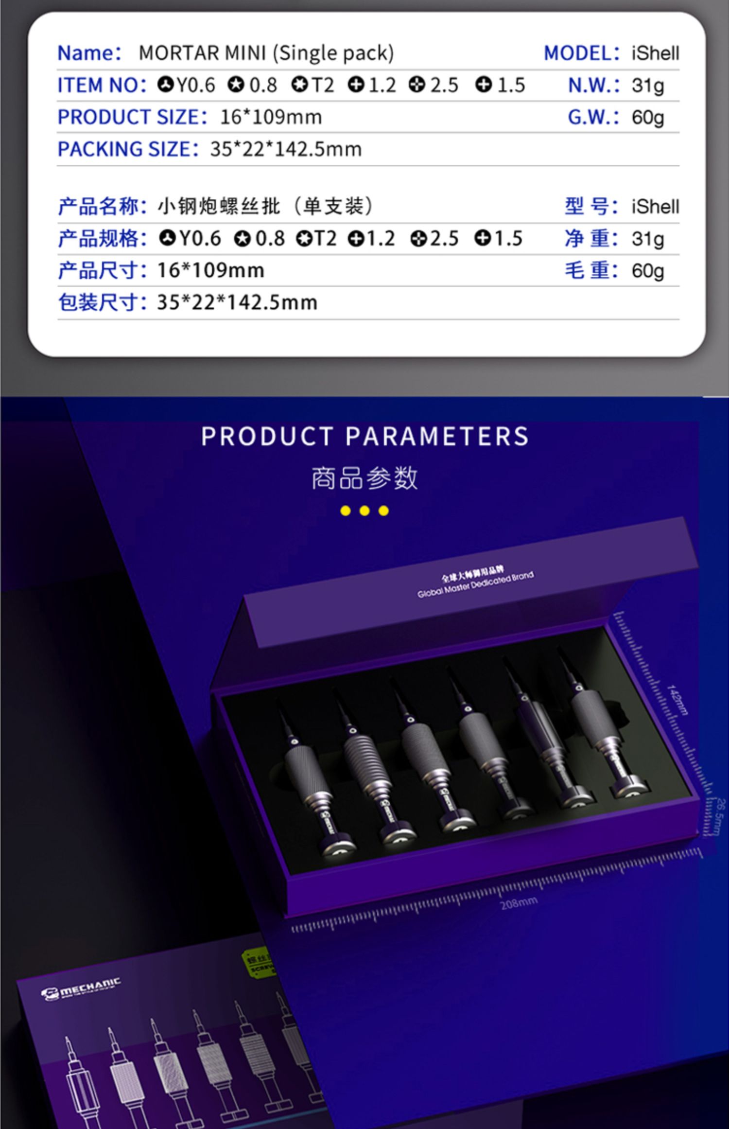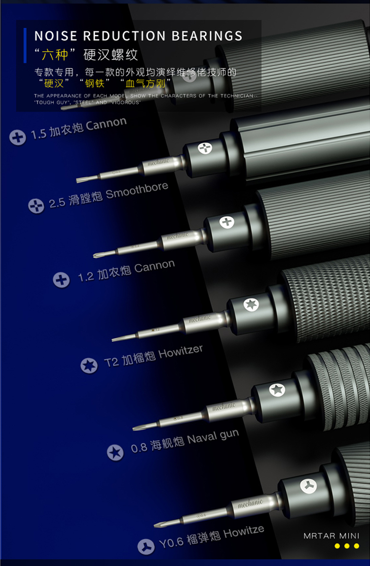| Color | Reparador Cross 1.2 destornillador de cañón de acero pequeño, reparador cinco estrellas 0.8 destornillador de cañón de acero pequeño, reparador triángulo 0.6 destornillador de cañón de acero pequeño, reparador tablero medio 2.5 destornillador de cañón de acero pequeño, reparador Cross hexagonal t2 destornillador de cañón de acero pequeño, reparador Cross 1.5 destornillador de cañón de acero pequeño, reparador 1 en cada especificación, un total de 6 cajas de embalaje, reparador 6 destornilladores de cañón de acero pequeño y empacador independiente. |