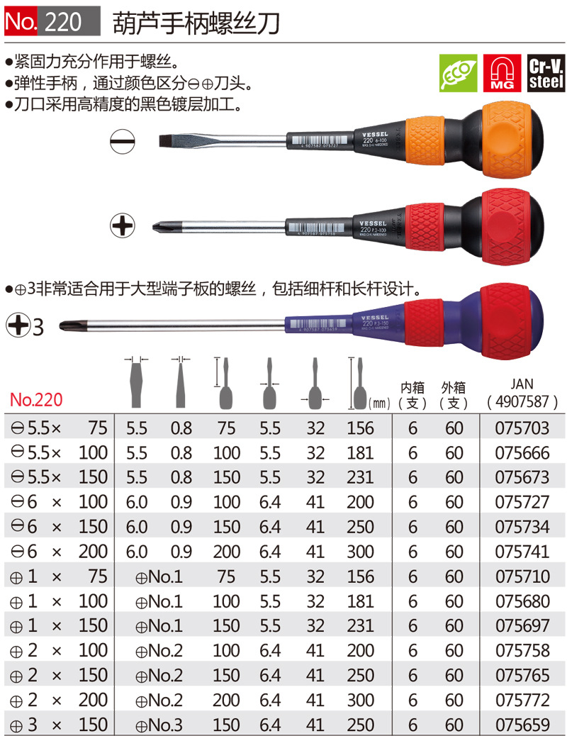 Destornillador Cross One Word Serie 220 con destornillador de grado industrial magnético fuerte Herramientas importadas