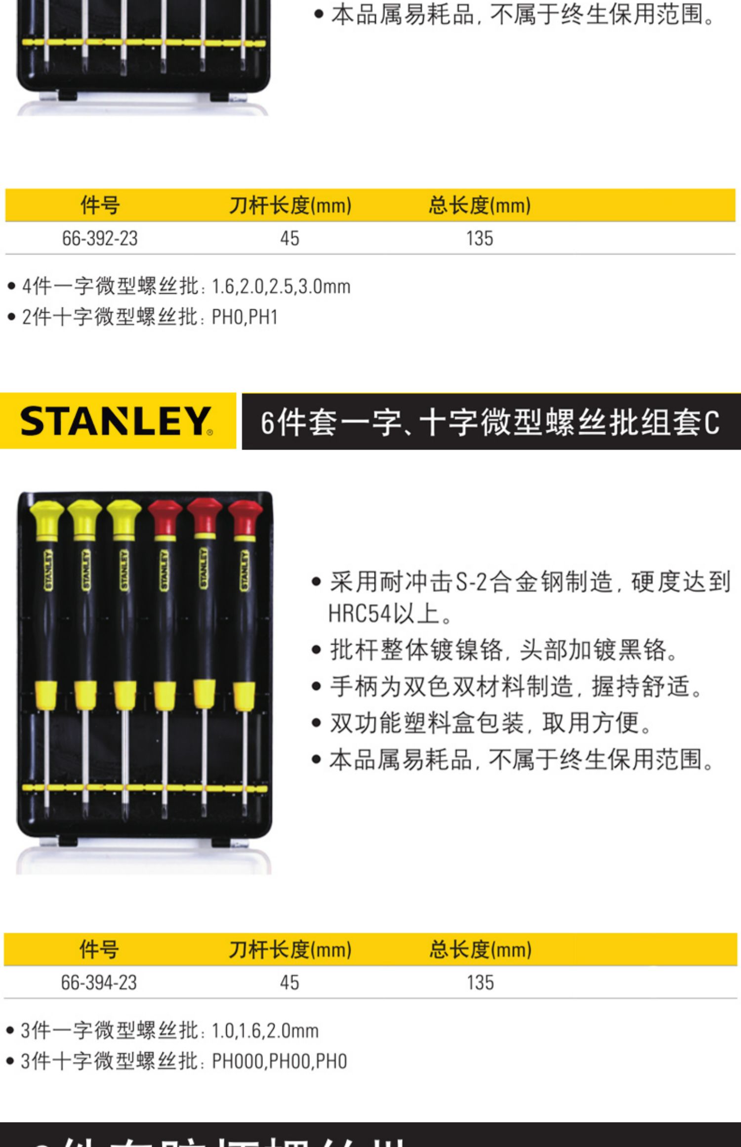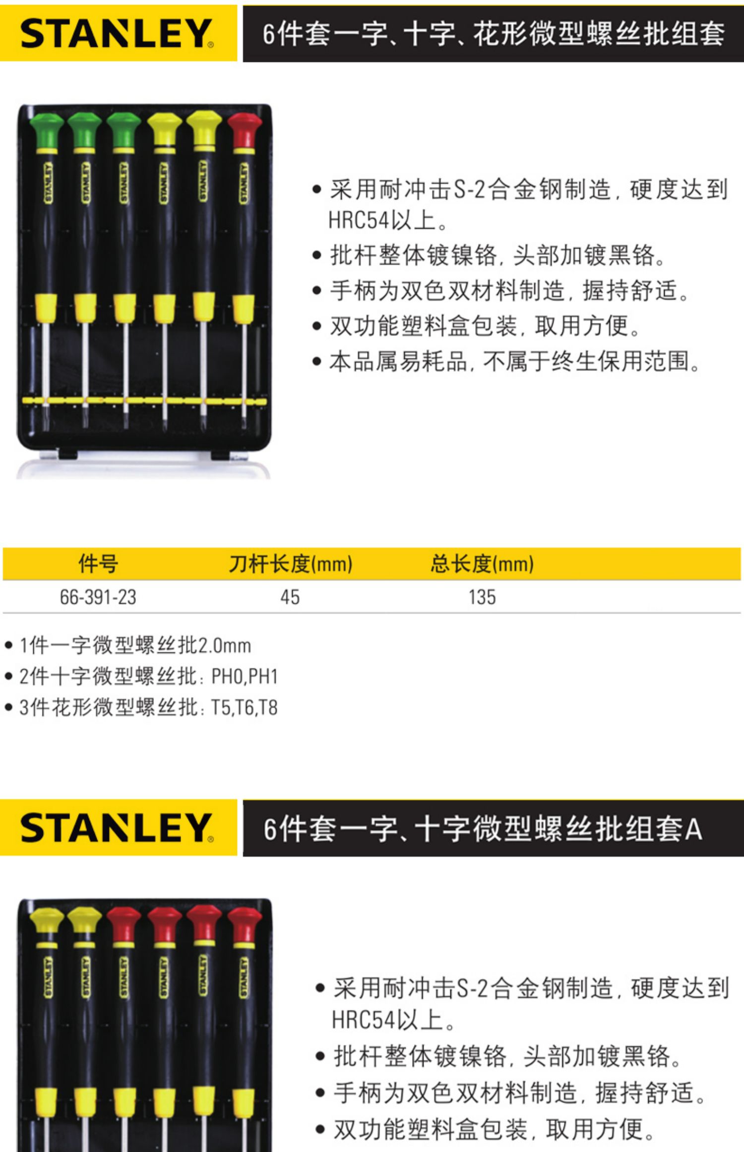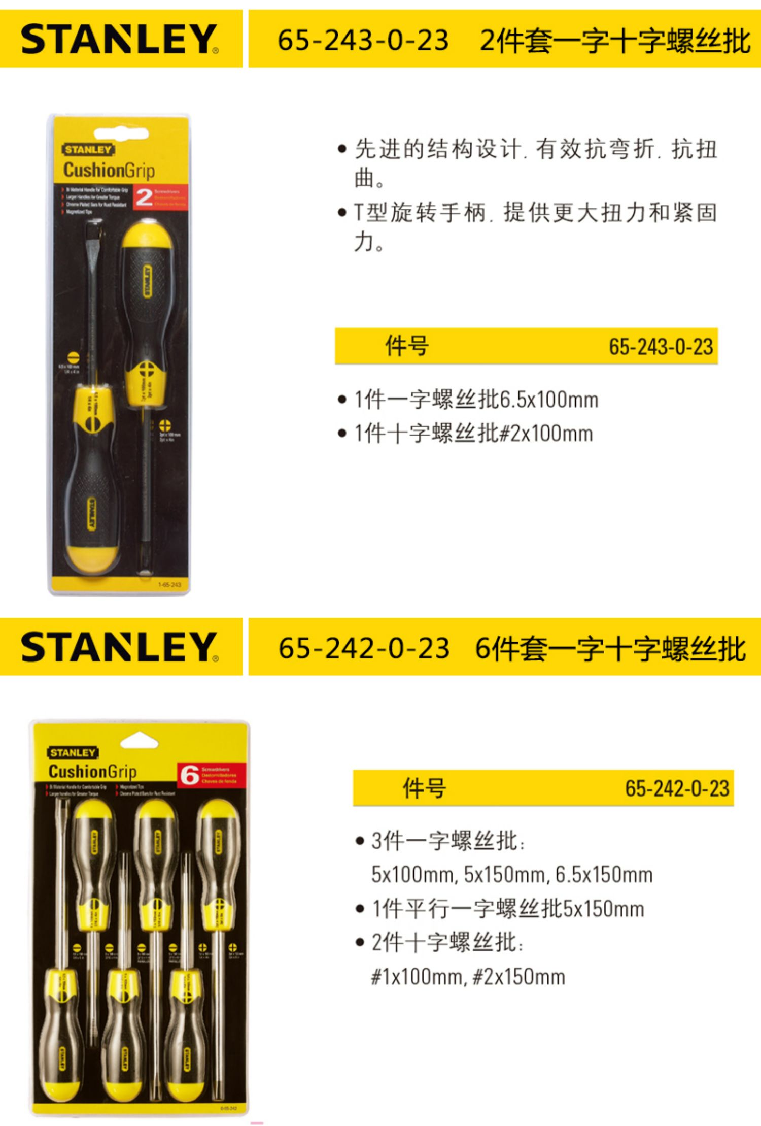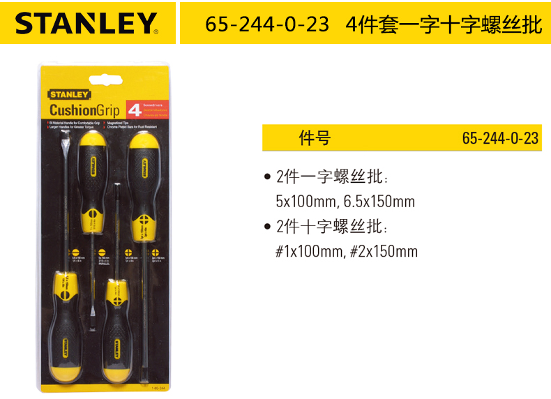 Stanley Stainless Steel Screw Handle Conjuntos de destornillador de agujero medio en forma de cruz
