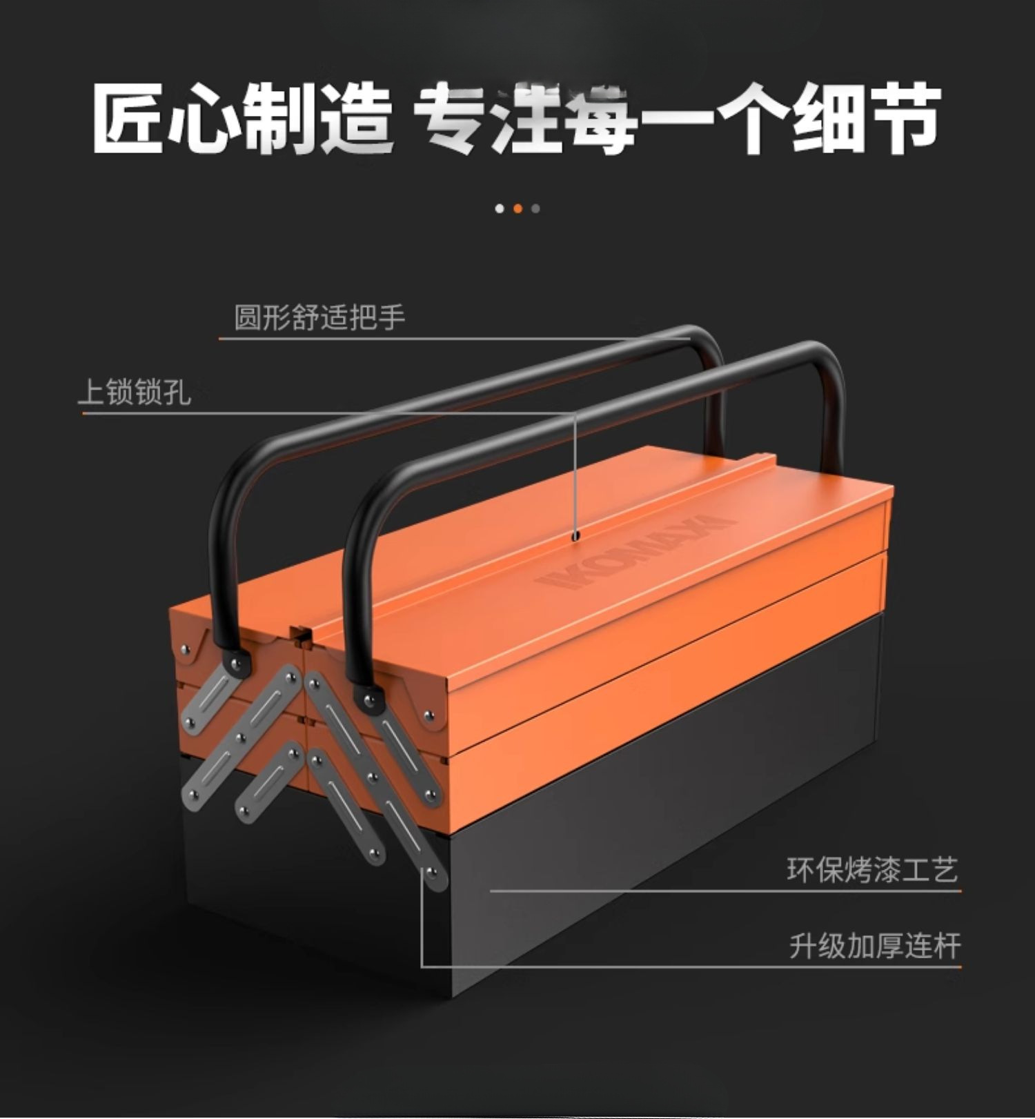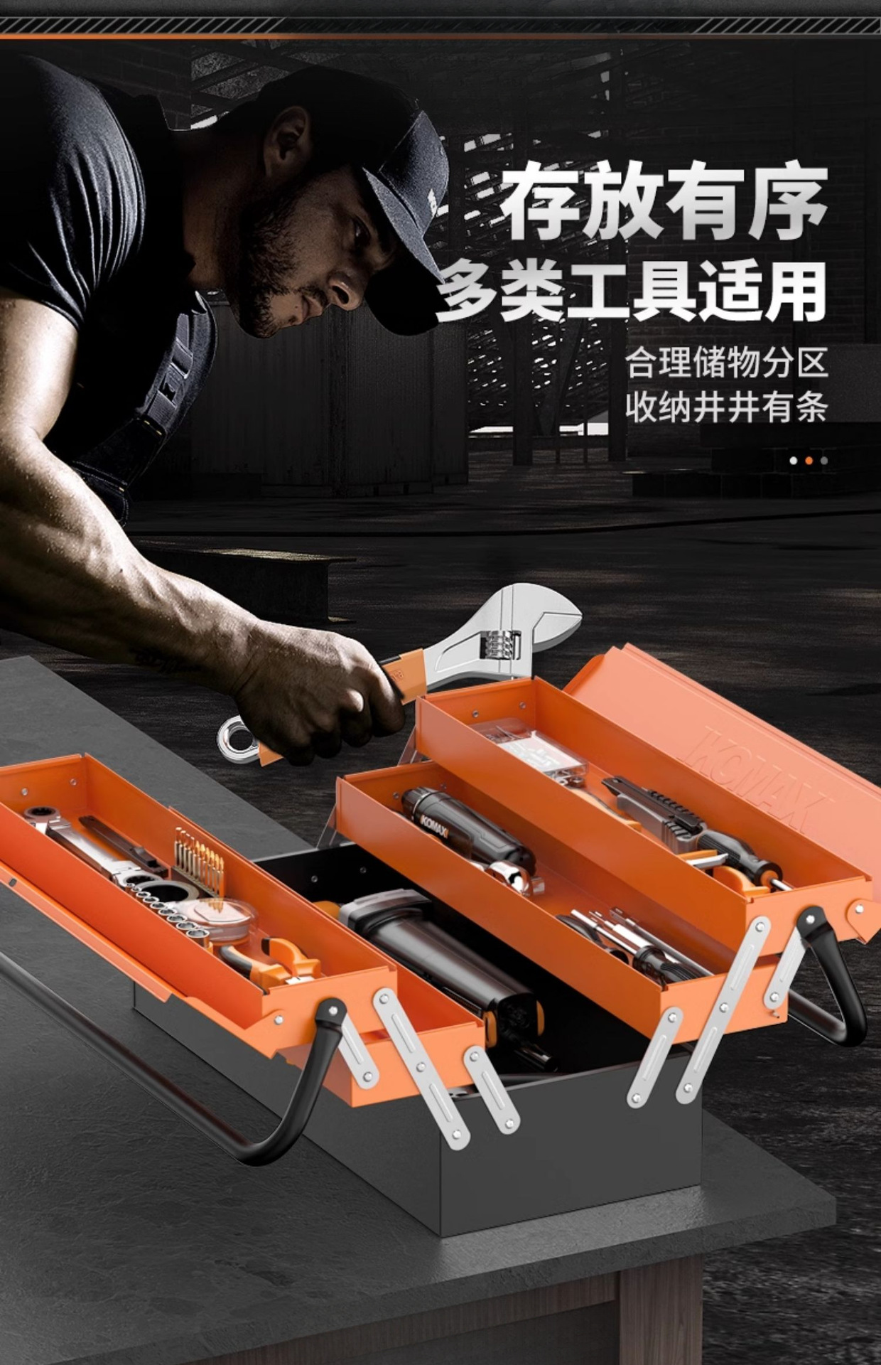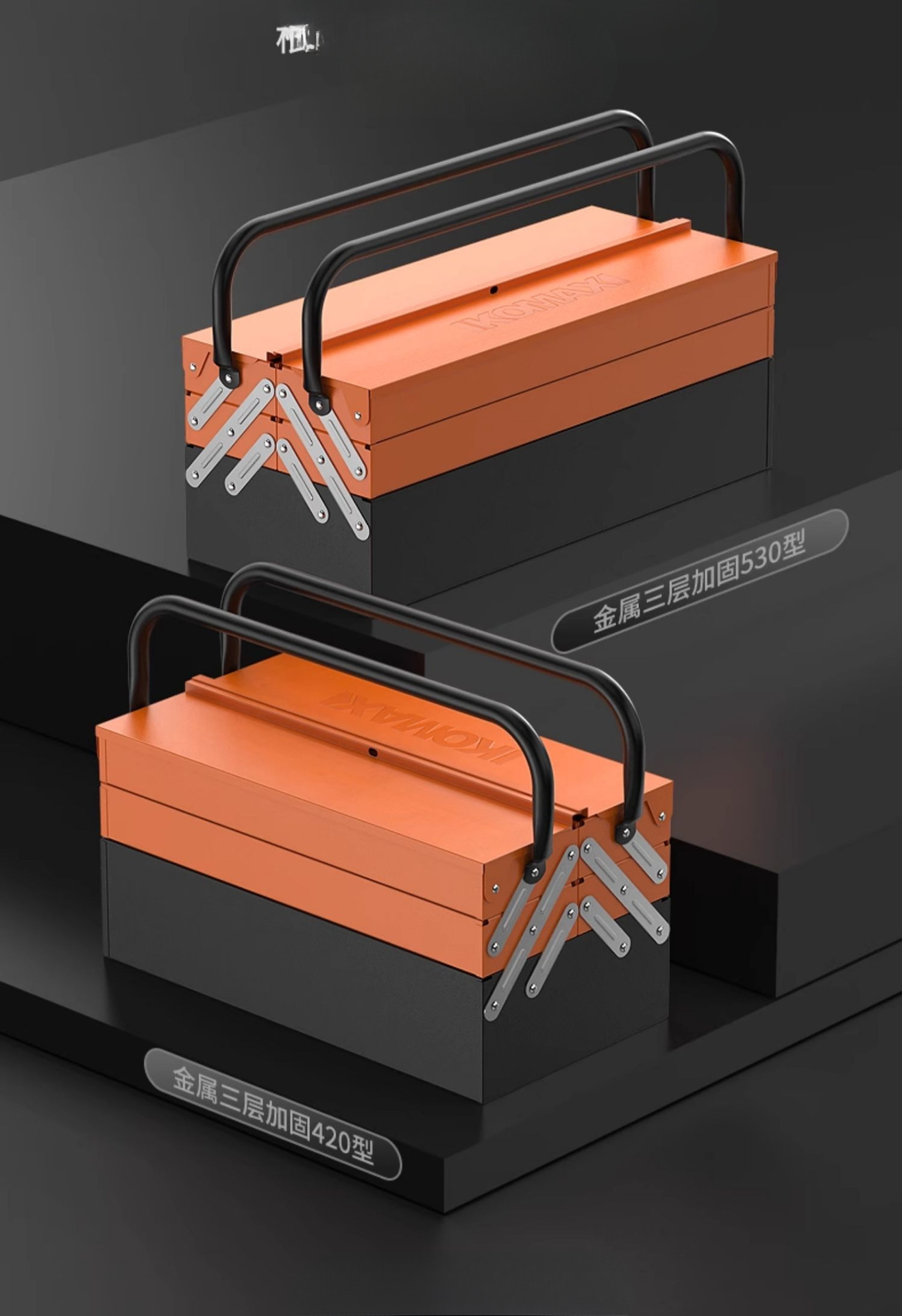 Caja de herramientas de acero inoxidable de tres capas plegables portátiles de hierro de grado industrial caja de almacenamiento de hardware multifuncional para automóviles domésticos