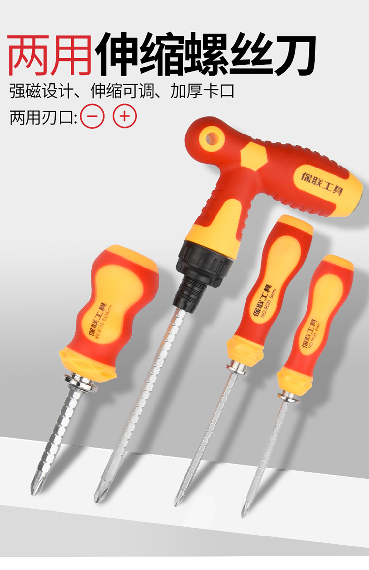 Un conjunto de destornillador cruzado de doble propósito, destornillador telescópico pequeño, trinquete, tornillo magnético fuerte, destornillador doméstico