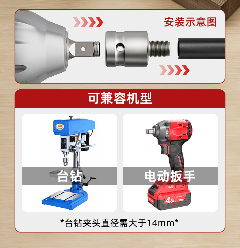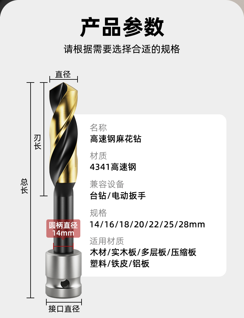 | Especificaciones y modelos | 电动扳手专用14mm,电动扳手专用16mm,电动扳手专用18mm,电动扳手专用20mm,电动扳手专用22mm,电动扳手专用25mm,电动扳手专用28mm,手电钻专用12mm,手电钻专用14mm,手电钻专用16mm,手电钻专用18mm,手电钻专用20mm,手电钻专用22mm,手电钻专用25mm,手电钻专用28mm,--以下是电动扳手专用加长款--,150mm加长杆+14mm钻头,150mm加长杆+16mm钻头,150mm加长杆+18mm钻头,150mm加长杆+20mm钻头,150mm加长杆+22mm钻头,150mm加长杆+25mm钻头,150mm加长杆+28mm钻头,250mm加长杆+14mm钻头,250mm加长杆+16mm钻头,250mm加长杆+18mm钻头,250mm加长杆+20mm钻头,250mm加长杆+22mm钻头,250mm加长杆+25mm钻头,250mm加长杆+28mm钻头,300mm加长杆+14mm钻头,300mm加长杆+16mm钻头,300mm加长杆+18mm钻头,300mm加长杆+20mm钻头,300mm加长杆+22mm钻头,300mm加长杆+25mm钻头,300mm加长杆+28mm钻头,400mm加长杆+14mm钻头,400mm加长杆+16mm钻头,400mm加长杆+18mm钻头,400mm加长杆+20mm钻头,400mm加长杆+22mm钻头,400mm加长杆+25mm钻头,400mm加长杆+28mm钻头,600mm加长杆+14mm钻头,600mm加长杆+16mm钻头,600mm加长杆+18mm钻头,600mm加长杆+20mm钻头,600mm加长杆+22mm钻头,600mm加长杆+25mm钻头,600mm加长杆+28mm钻头,150mm电动扳手加长杆(2支),250mm电动扳手加长杆,400mm电动扳手加长杆,600mm电动扳手加长杆,300mm手电钻加长杆,直柄麻花钻6.8mm,1/2四方接杆【M10内丝】2件装,1/2四方接杆【M10内丝】5件装,手电钻专用12mm. |