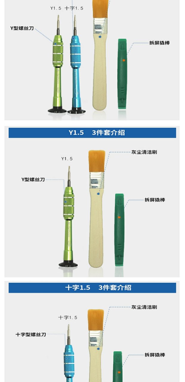 | Colores | Juego de 8 piezas como se muestra en la imagen,Juego de 7 piezas como se muestra en la imagen,Cepillo de 5 piezas como se muestra en la imagen,Juego de pinzas de 5 piezas como se muestra en la imagen,Cepillo de 4 piezas como se muestra en la imagen,Y1.5 y otros juegos de 3 piezas como se muestra en la imagen,Cruz 1.5 y otros juegos de 3 piezas como se muestra en la imagen,Y2.0 y otros juegos de 6 piezas como se muestra en la imagen,Y2.0 Y1.5 cepillo de 5 piezas,Juego de 5 cepillos Y2.0,Juego de 5 pinzas Y2.0,Y1.5 destornillador individual,Y2.0 destornillador individual,Destornillador único cruzado 1.5,Destornillador único Cross 2.0 |