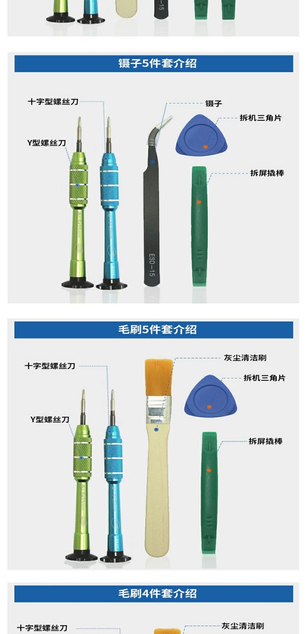 | Modelo de especificación | Juego de pinzas de 5 piezas como se muestra en la imagen,Juego de 7 piezas como se muestra en la imagen,Cepillo de 5 piezas como se muestra en la imagen,Cepillo de 4 piezas como se muestra en la imagen,Y1.5 y otros juegos de 3 piezas como se muestra en la imagen,Cruz 1.5 y otros juegos de 3 piezas como se muestra en la imagen,Juego de 8 piezas como se muestra en la imagen,Y2.0 y otros juegos de 6 piezas como se muestra en la imagen,Y2.0 Y1.5 cepillo de 5 piezas,Juego de 5 cepillos Y2.0,Juego de 5 pinzas Y2.0,Y1.5 destornillador individual,Y2.0 destornillador individual,Destornillador único cruzado 1.5,Destornillador único Cross 2.0 |