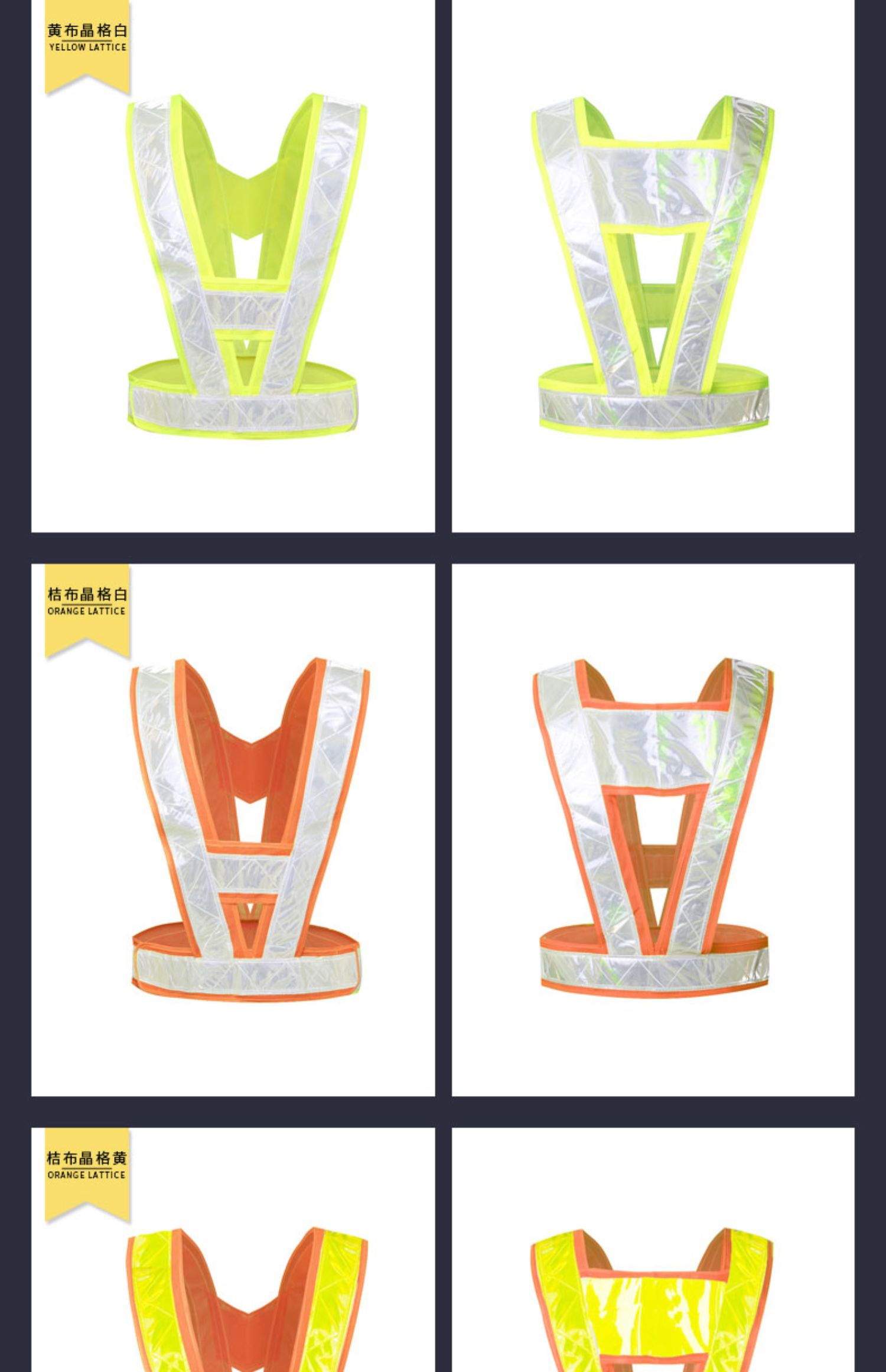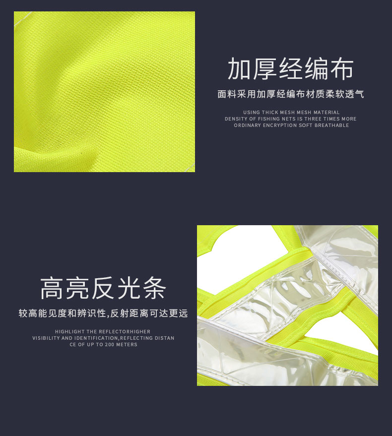 | Especificaciones y modelos | Red de tela amarilla blanca, red de tela naranja blanca, red de tela naranja amarilla, banda reflectante de alta elasticidad (color naranja), banda reflectante de alta elasticidad (verde fluorescente) |