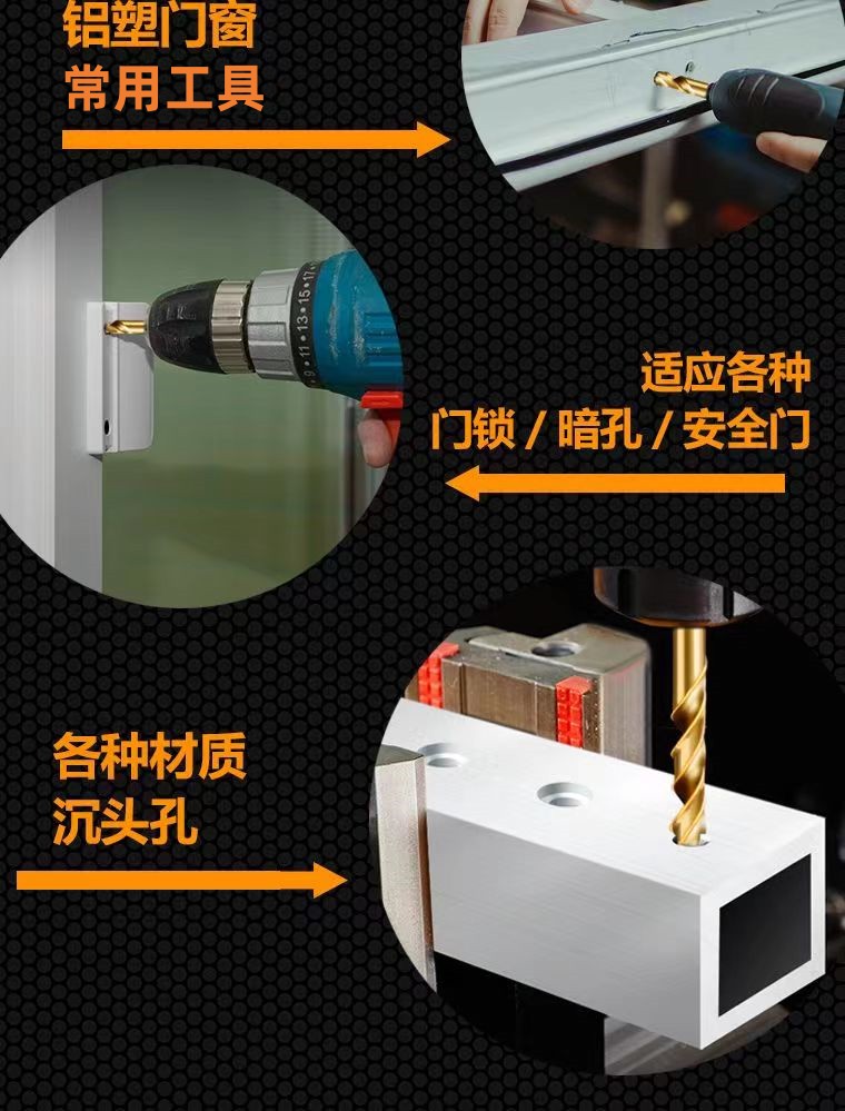 Perforación de escalones personalizada puerta y ventana de aleación de aluminio carpintería perforación de diámetro reducido perforación de segundo paso torsión perforación de agujero de contador fija