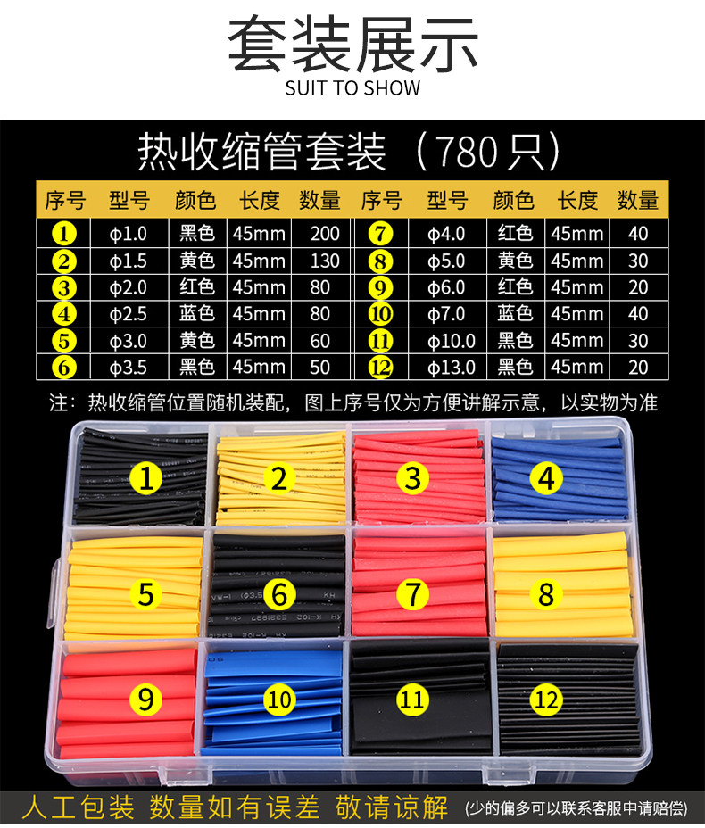 | Modelo | 6MM-5 colores aleatorios,8MM-5 raíces (línea de manzana),9.5MM-5 piezas (cable Android),127pcs negro (bolsa) 2 veces la contracción,[Recomendado] 164pcs color (bolsa) 2 veces encogimiento,280 colores (bolsas) 2 veces la contracción,328 color (bolsa) 2 veces la contracción,280 colores (en caja) 2 veces la contracción,530 colores (en caja) 2 veces la contracción,140 colores (en caja) 2 veces la contracción,560 colores (en caja) 2 veces la contracción,580 colores (en caja) 2 veces la contracción,750 colores (en caja) 2 veces la contracción,780 color (en caja) 2 veces la contracción,145 negro (en caja) 2 veces la contracción,220 negro (en caja) 2 veces la contracción,355 negro (en caja) 2 veces la contracción |