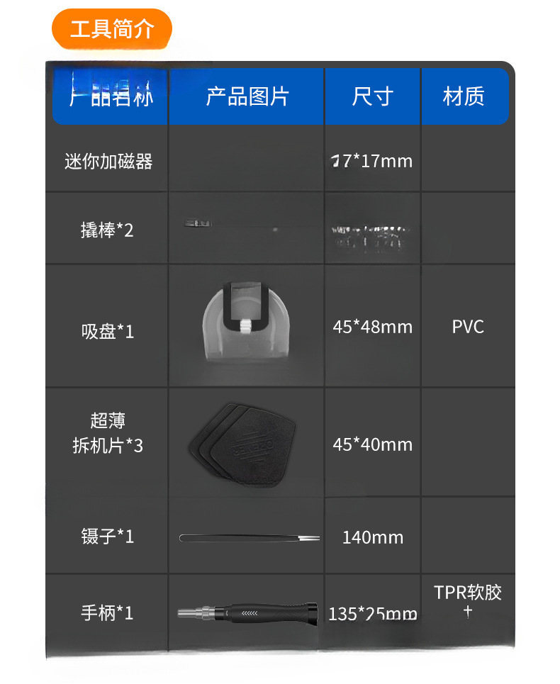 | Especificaciones y modelos | [zhengtai - modelo general] conjunto de destornilladores de 30 en 1 para máquinas de desmontaje de un solo lado, [zhengtai - modelo estándar] conjunto de destornilladores de 26 en 1 (material CR - v) para máquinas de desmontaje de un solo lado, [zhengtai - modelo actualizado] conjunto de destornilladores de 50 en 1 (material CR - v) para máquinas de desmontaje de doble cara, [zhengtai - modelo reforzado] conjunto de destornilladores de 106 en 1 (material CR - v) para máquinas de desmontaje multiuso de mango de aluminio de aviación, [zhengtai - modelo insignia] conjunto de destornilladores de 83 en 1 (material s2) para máquinas de desmontaje de precisión extendidas, [zhengtai - modelo supremo] conjunto de destornilladores de 145 (material s2) para máquinas de desmontaje de doble Cara. |