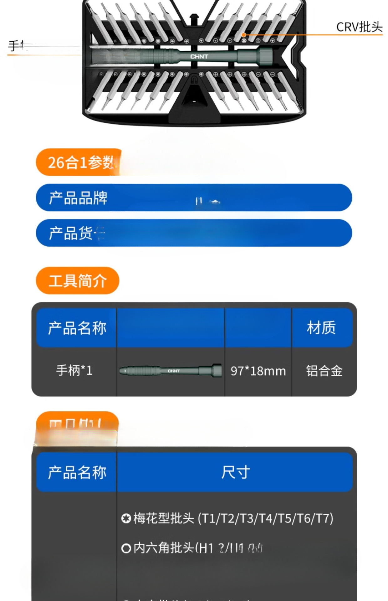 ![[zhengtai - modelo estándar] conjunto de destornillador 26 en 1 (material CR - v) para desmontar una sola cara](https://cbu01.alicdn.com/img/ibank/O1CN01RnYvMv1Clv7cDRSmc_!!2207977460122.jpg)