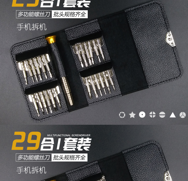 | Color | Versión de mijo [25 en uno] mango de plástico, versión de absorción magnética de la billetera [25 en uno], versión de tornillo de mano de la billetera [25 en uno], juego de caja verde [32 en uno], juego de caja amarilla [32 en uno] juego, versión de mijo [25 en uno] mango de aluminio |