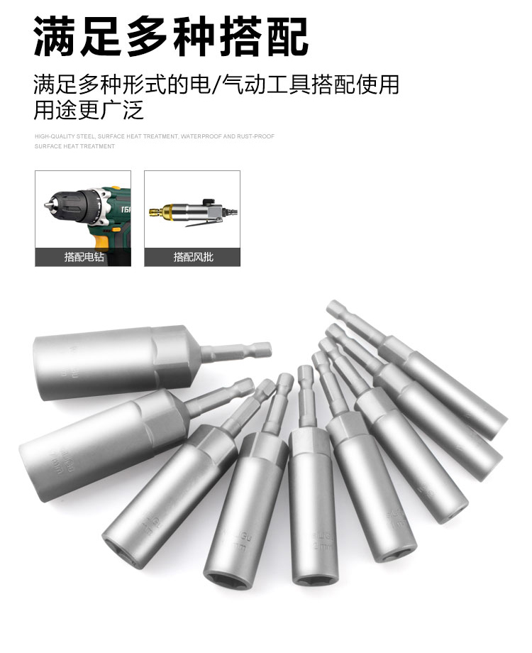 Profundizar y alargar el manguito hexagonal interno y externo lote de aire llave eléctrica conjunto de taladro eléctrico lote 8 10mm 45 cabeza de manguito profundo