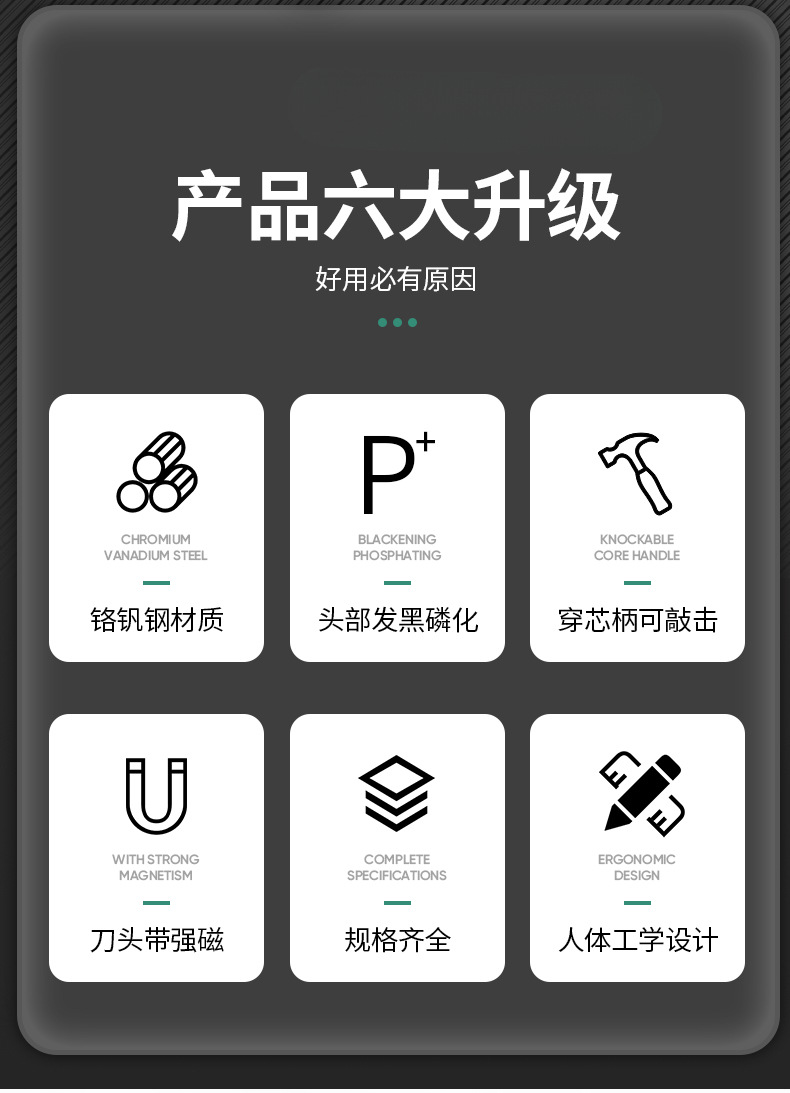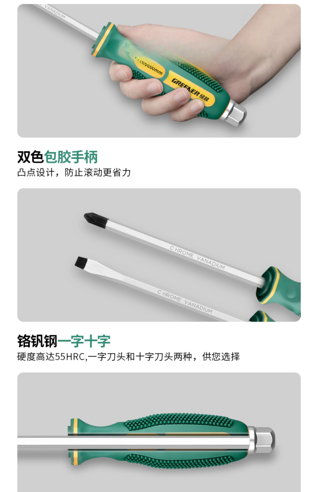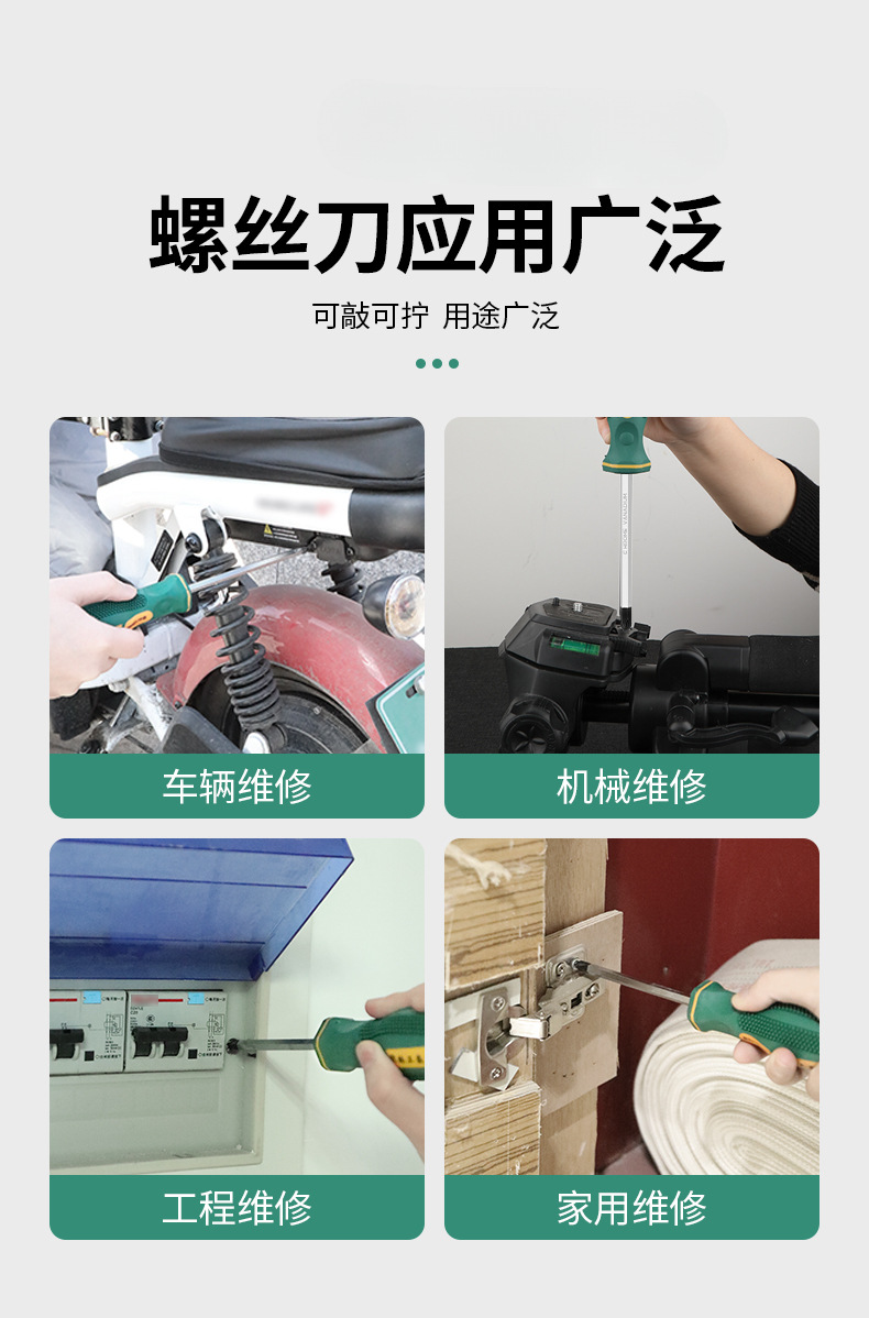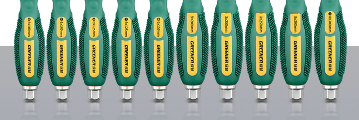 Juego de herramientas de destornillador de corazón cruzado de bosque verde, destornillador, golpe de grado industrial, destornillador de flor de ciruelo de una palabra de boca plana alargada