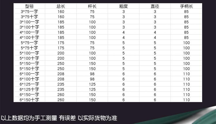 | Especificaciones y modelos | 3 * 75 (cruz / palabra) 1 cada uno, 3 * 100 (cruz / palabra) 1 cada uno, 4 * 100 (cruz / palabra) 1 cada uno, 5 * 75 (cruz / palabra) 1 cada uno, 5 * 100 (cruz / palabra) 1 cada uno, 5 * 150 (cruz / palabra) 1, 6 * 100 (cruz / palabra) 1, 6 * 125 (cruz / palabra) 1, 6 * 150 (cruz / palabra) 1 cada uno, 3 * 75, 3 * 100, 4 * 100, 4 * 100, 4 * 100, una palabra 5 * 75, Cruz 5 * 75, una palabra 5 * 100, Cruz 5 * 100, una palabra 5 * 150, Cruz 5 * 150, una palabra 6 * 100, Cruz 6 * 100, una palabra 6 * 125, Cruz 6 * 125, una palabra 6 * 150, Cruz 6 * 150 |