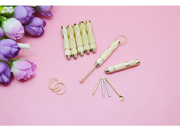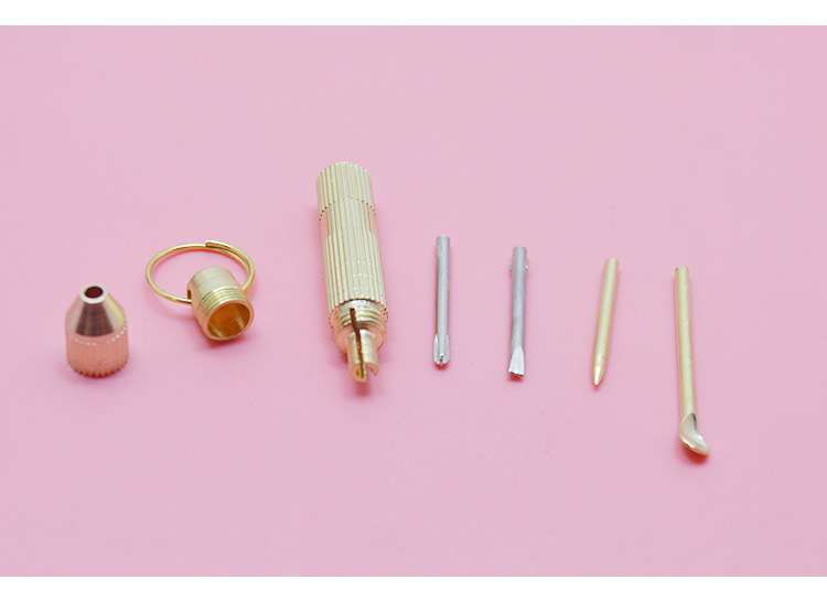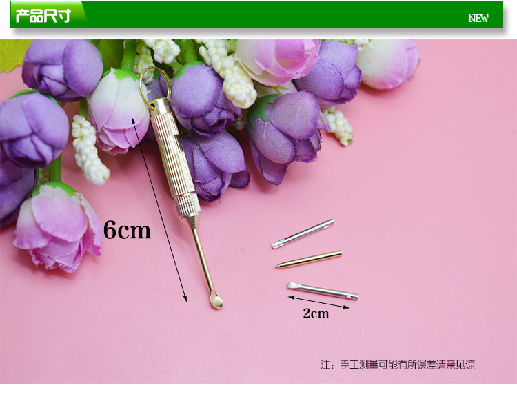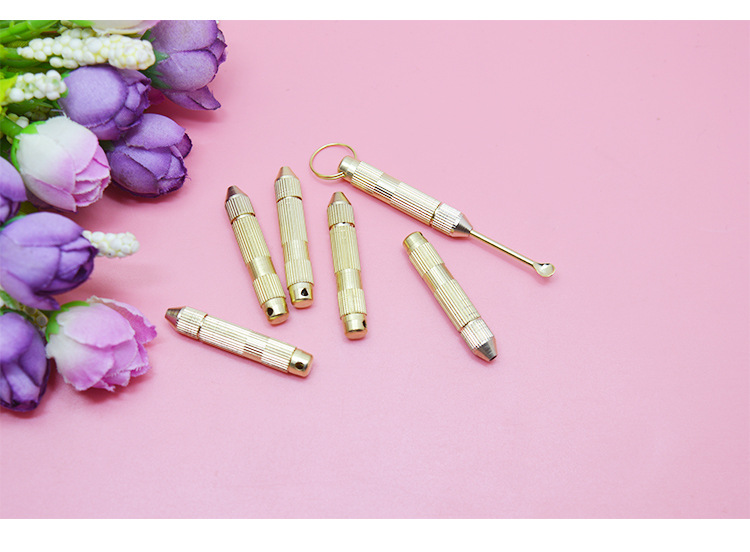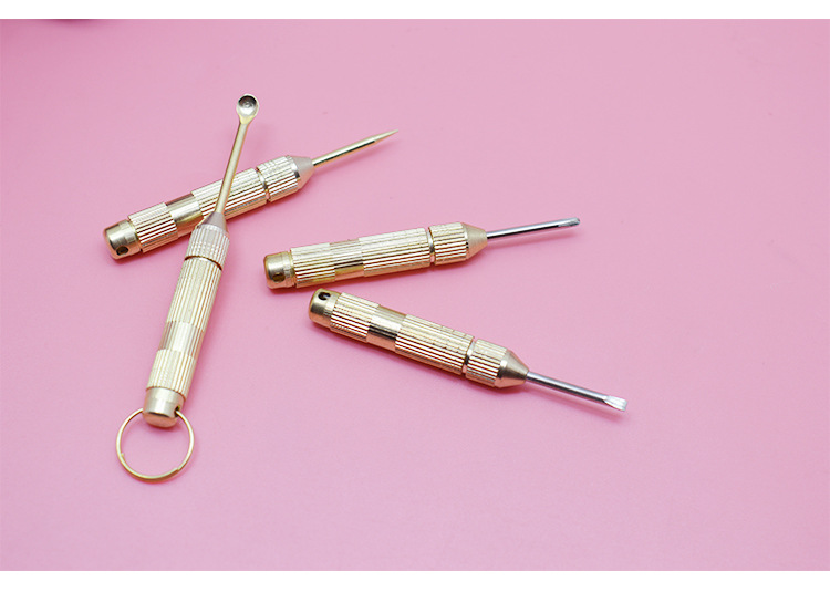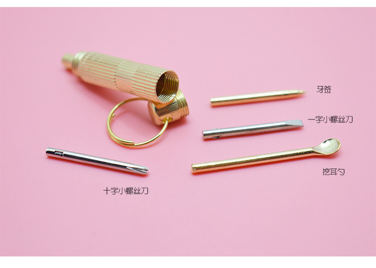 Cuchara de orejas, palillos de dientes multifuncionales, cone de cuatro piezas, conjunto de destornillador de orejas de cobre puro, llavero de cuchara de orejas, mini-herramienta