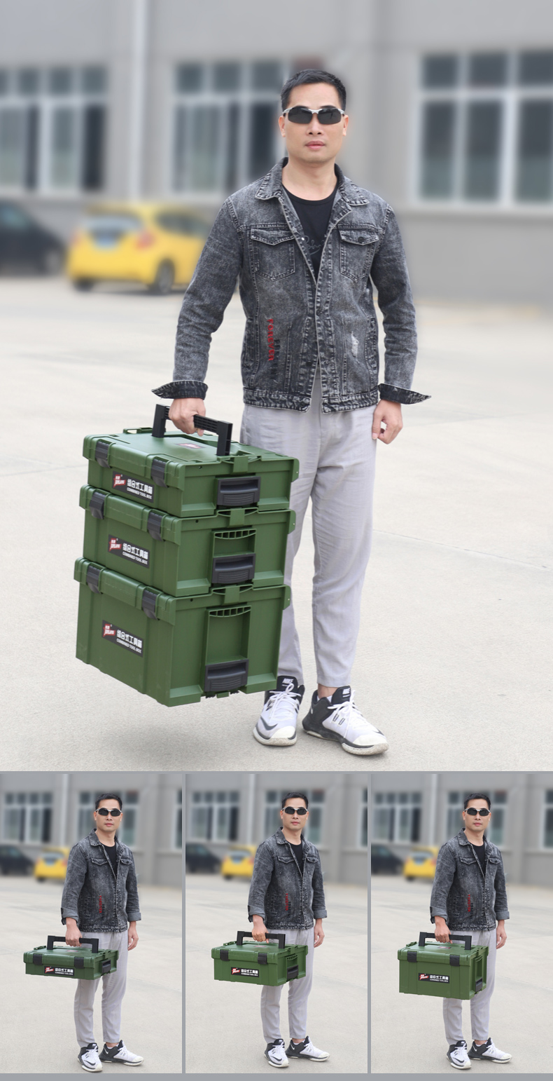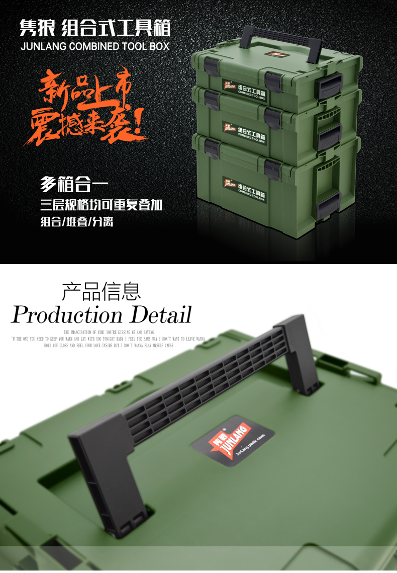 Caja de herramientas de hardware portátil apilada de Huanwolf perforador eléctrico carpintero decoración maestro caja de almacenamiento combinada multicapa