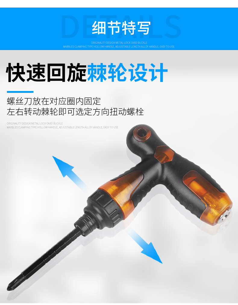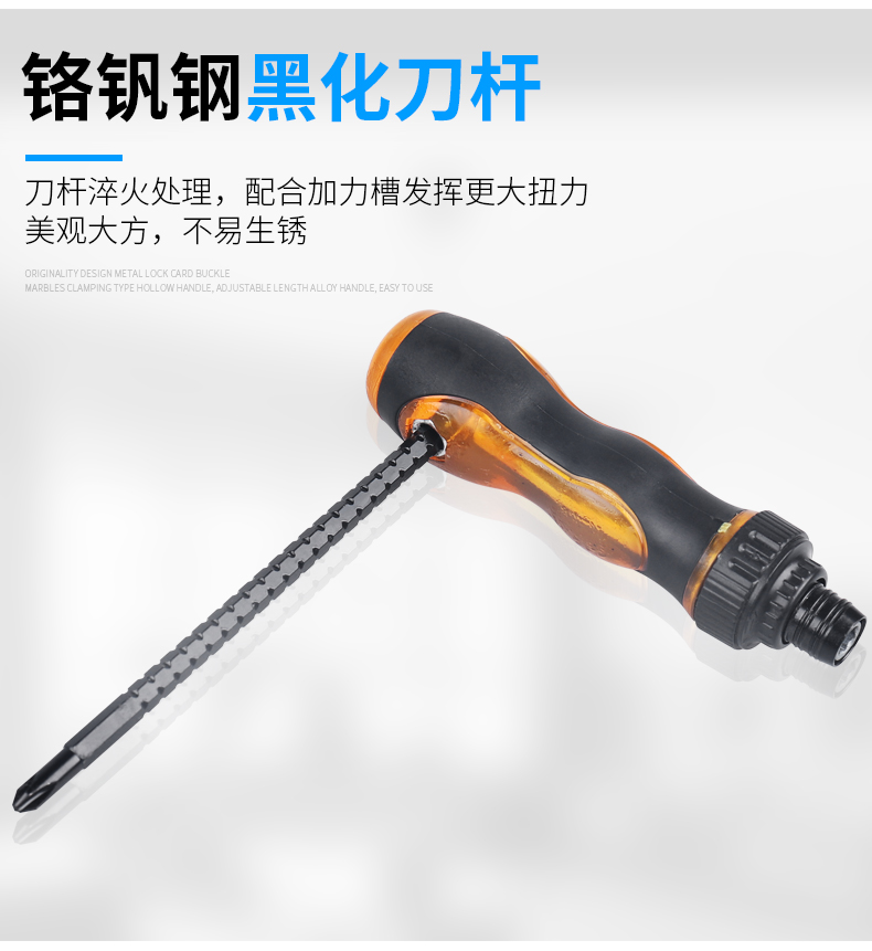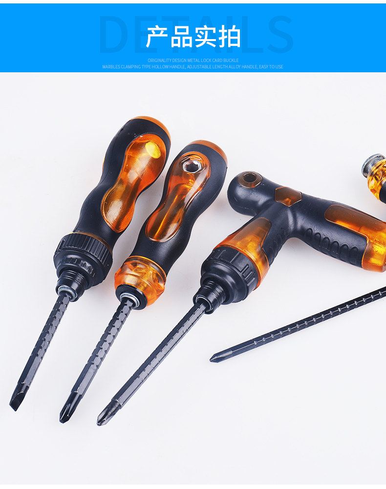 | Especificaciones y modelos | Mini doble uso, doble uso telescópico (color promocional aleatorio), doble uso telescópico de 4 pulgadas, doble uso telescópico de 6 pulgadas, destornillador de trinquete de 6 pulgadas, destornillador de trinquete en forma de t, cabeza de rábano de doble uso rojo (color aleatorio) |