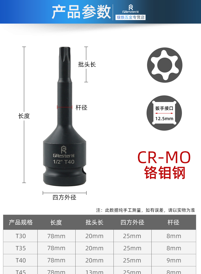 Hexagonal de flor interna 1 / 2 llave eléctrica hexagonal interna T30 flor de ciruela mangas de tornillo T45 T35