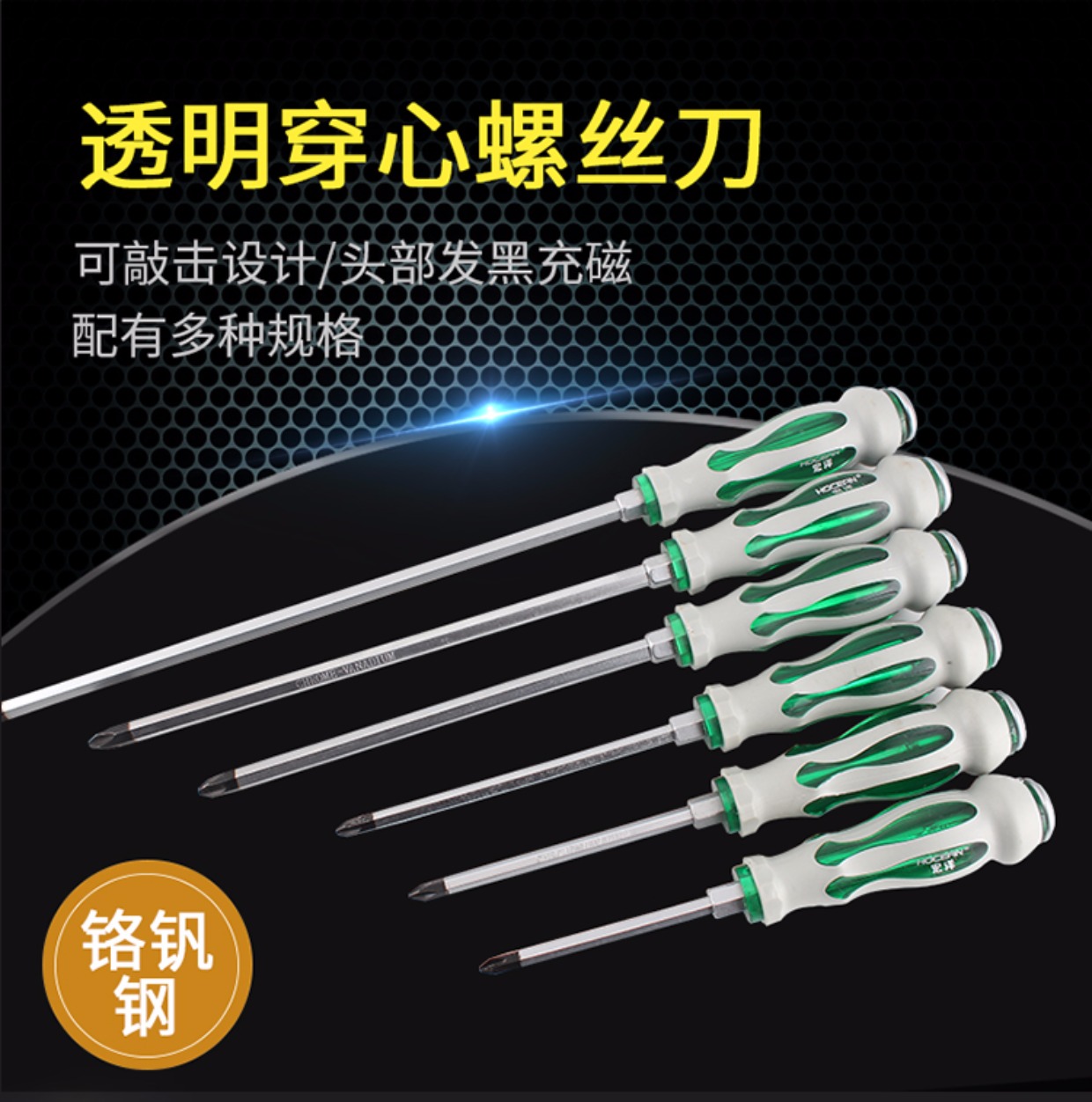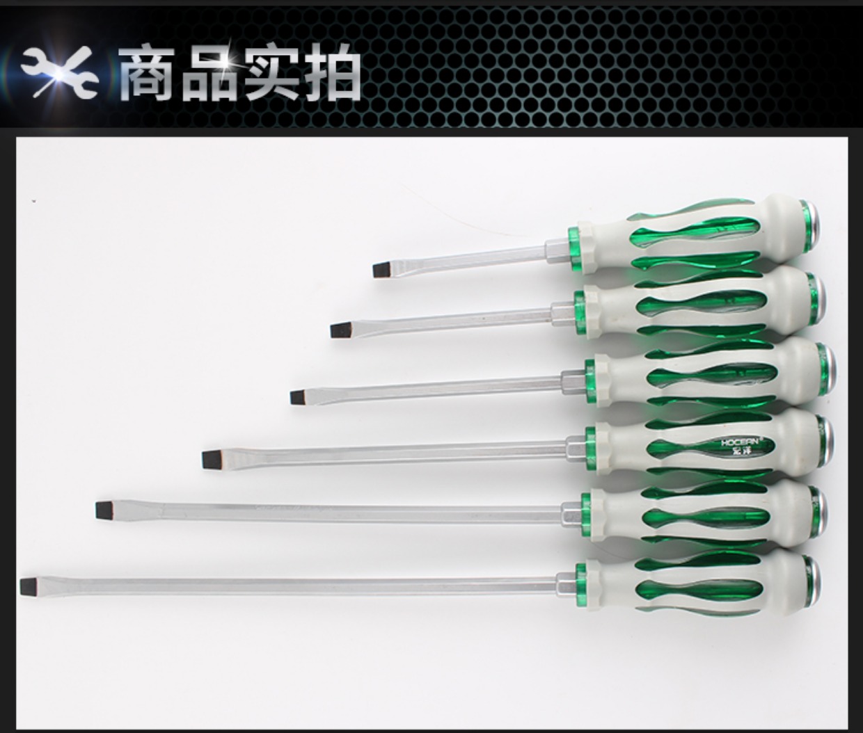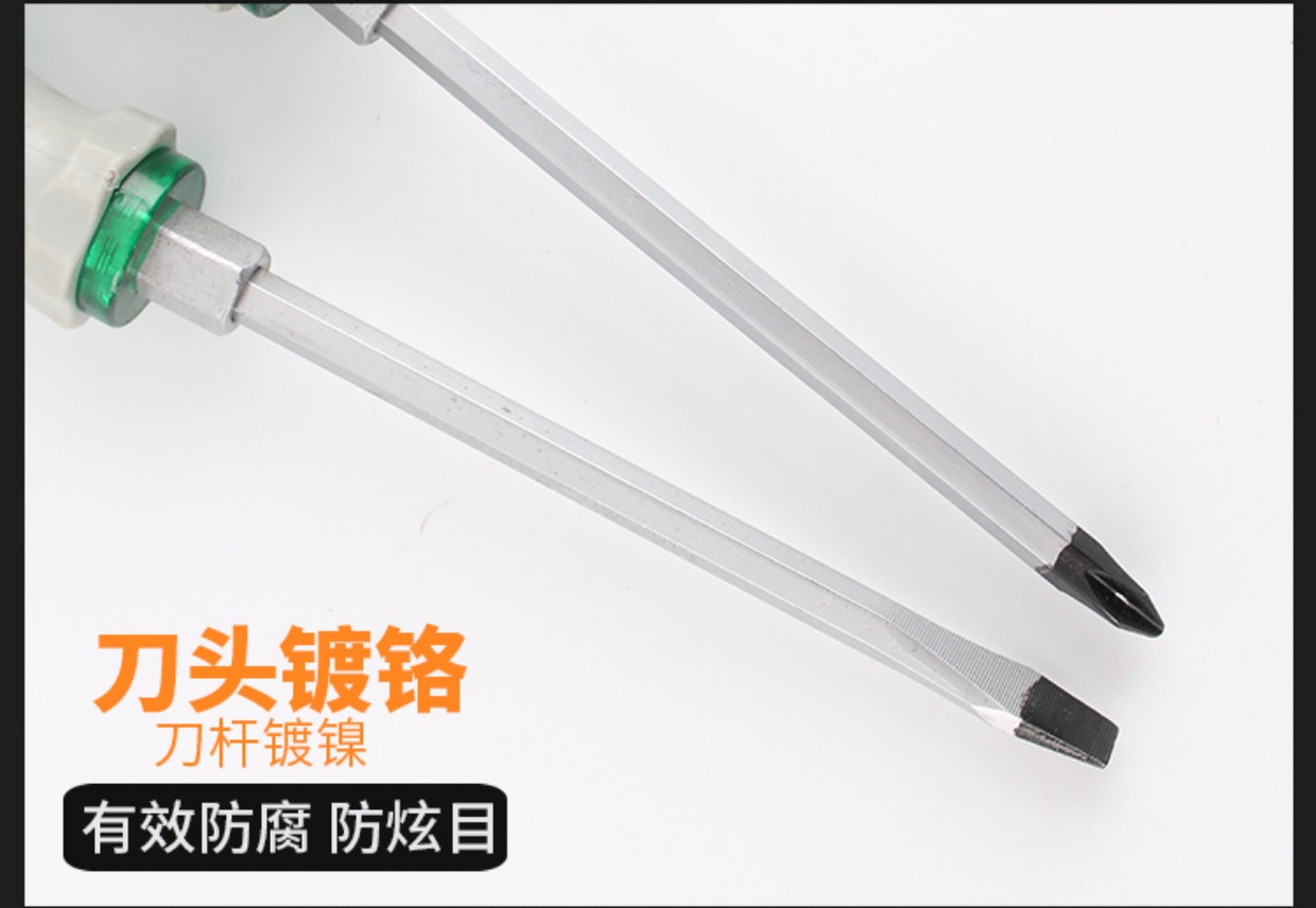Un destornillador de perforación de núcleo con una longitud de cruz en forma de una barra de extensión de cabeza plana con un conjunto de abertura ancha