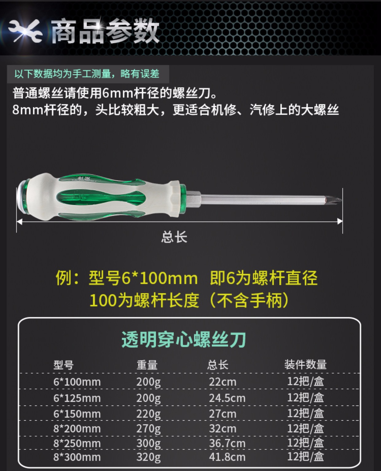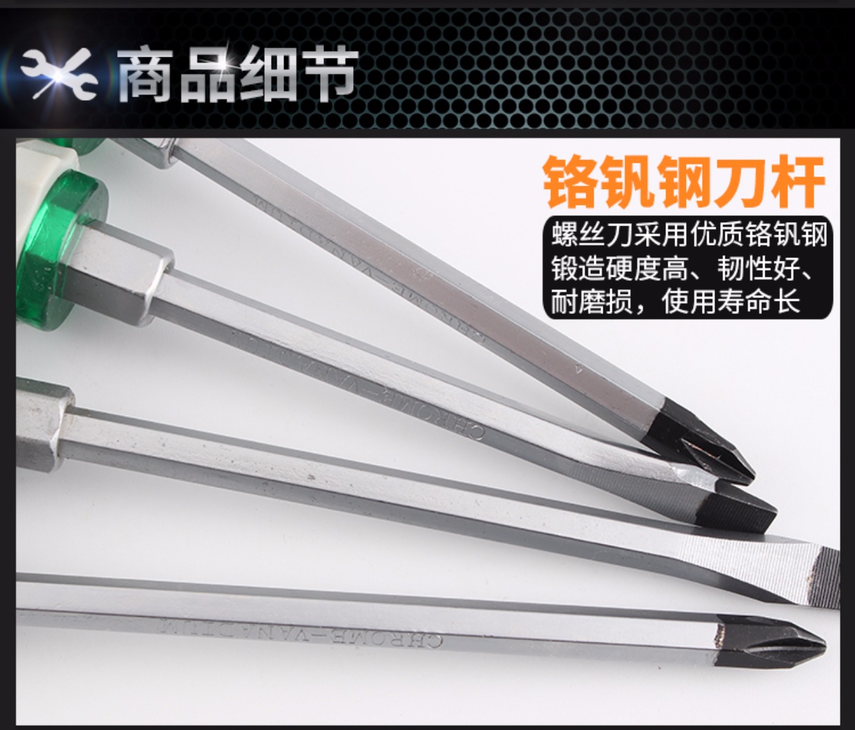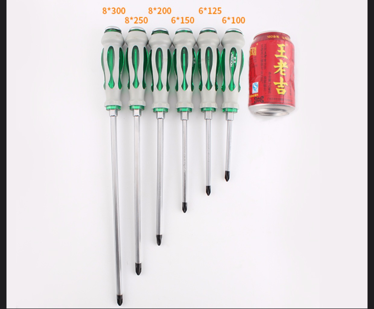 Un destornillador de perforación de núcleo con una longitud de cruz en forma de una barra de extensión de cabeza plana con un conjunto de abertura ancha