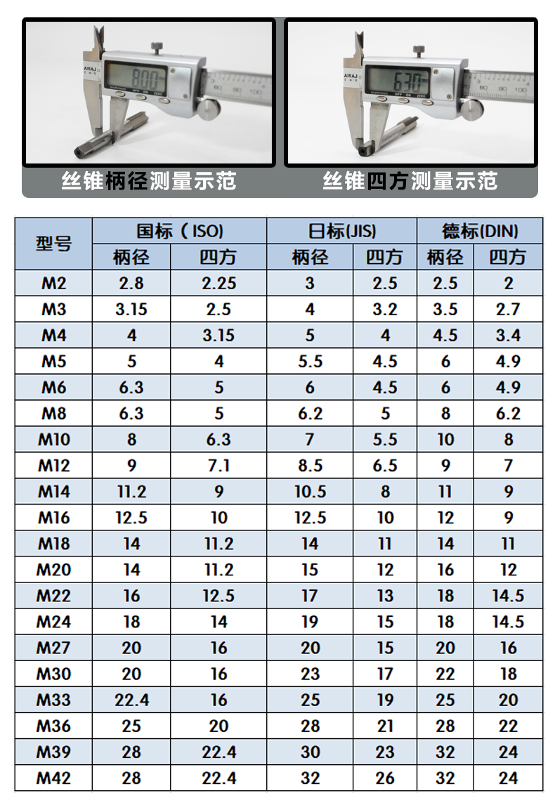 | Modelo | Norma nacional gt24 - M3 * iso, norma nacional gt24 - M4 * iso, norma nacional gt24 - M5 * iso, norma nacional gt24 - M6 * iso, norma nacional gt24 - M8 * iso, norma nacional gt24 - M10 * iso, norma nacional gt24 - M12 * iso, norma nacional gt24 - M14 * iso, norma nacional gt24 - M16 * iso, norma nacional gt24 - m20 * iso, norma nacional gt24 - M22 * iso, norma nacional gt24 - M24 * iso, norma nacional gt24 - M22 * iso, norma nacional gt24 - m20 * ISO norma nacional gt24 - m33 * ISO (acero), norma nacional gt24 - M36 * ISO (acero), norma nacional gt24 - M39 - M42 * ISO (acero), norma diaria gt24 - M3 * jis, norma diaria gt24 - M4 * jis, norma diaria gt24 - M5 * jis, norma diaria gt24 - M6 * jis, norma diaria gt24 - M8 * jis, norma diaria gt24 - M10 * jis, norma diaria gt24 - M12 * jis, norma diaria gt24 - M14 * jis, norma diaria gt24 - M16 * jis, norma diaria gt24 - M18 * jis, norma diaria* jis, Japan Standard gt24 - m20 * jis, Japan Standard gt24 - M22 * jis, Japan Standard gt24 - M24 * jis, Japan Standard gt24 - M27 * jis, Japan Standard gt24 - m20 * jis, German Standard gt24 - M3 * din, German Standard gt24 - M4 * din, German Standard gt24 - M5 * din, German Standard gt24 - M6 * din, German Standard gt24 - M8 * din, German Standard GT24-M10*DIN, Estándar Alemán gt24 - M12 * din, estándar alemán gt24 - M14 * din, estándar alemán gt24 - M16 * din, estándar alemán gt24 - M18 * din, estándar alemán gt24 - m20 * din, estándar alemán gt24 - M22 * din, estándar alemán gt24 - M24 * din, estándar alemán gt24 - M27 * din, estándar alemán gt24 - m20 * din, Mango de conexión gt24 - b16 (agujero cónico), mango de conexión gt24 - B18 (agujero cónico) |
