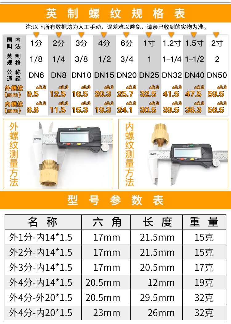 Conector de cobre de conversión de manómetro, núcleo de alambre interno y externo M14 M16 * 1.5 M10 * 1 M20 * 1.5 G1 / 2 1/4